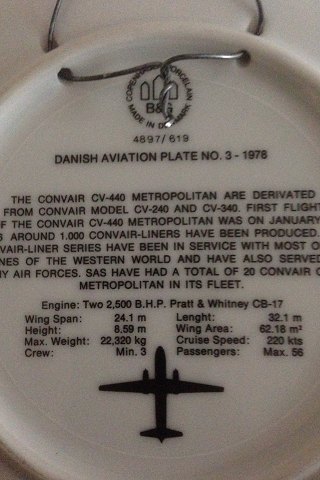Danish Aviation Plate No.3 - 1978 Metropolitan "Egil Viking" CV-440 1956-SAS1976.