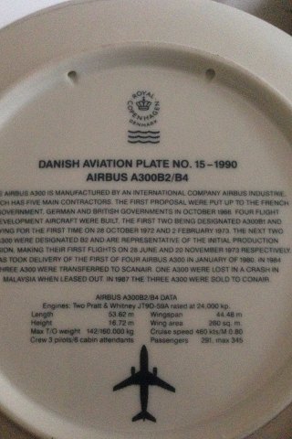 Danish Aviation Plate No.15 - 1990 Airbus A300B2/B4 "Snorre Viking Airbus A300B4 1980 SAS 1987.