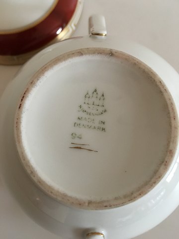 Bing & Grondahl Wagner Sugarbowl No 94. Wine Red and Gold Border. Measures 6.5 x 9.5 cm (2 9/16" x 3 47/64")