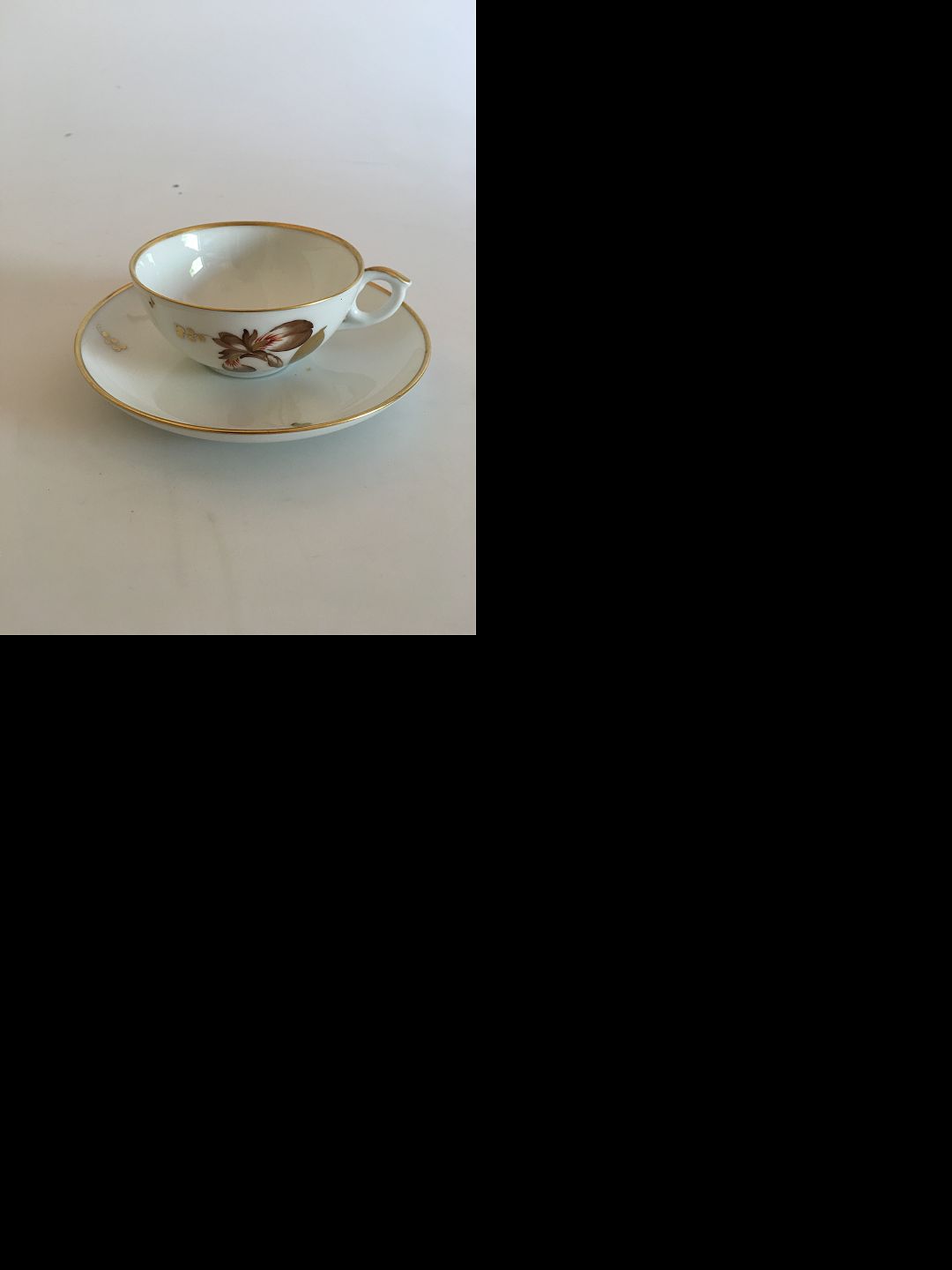 Royal Copenhagen Brown Iris Tea Cup and Saucer No 9186. The cup measures 4.5 x 9.5 cm