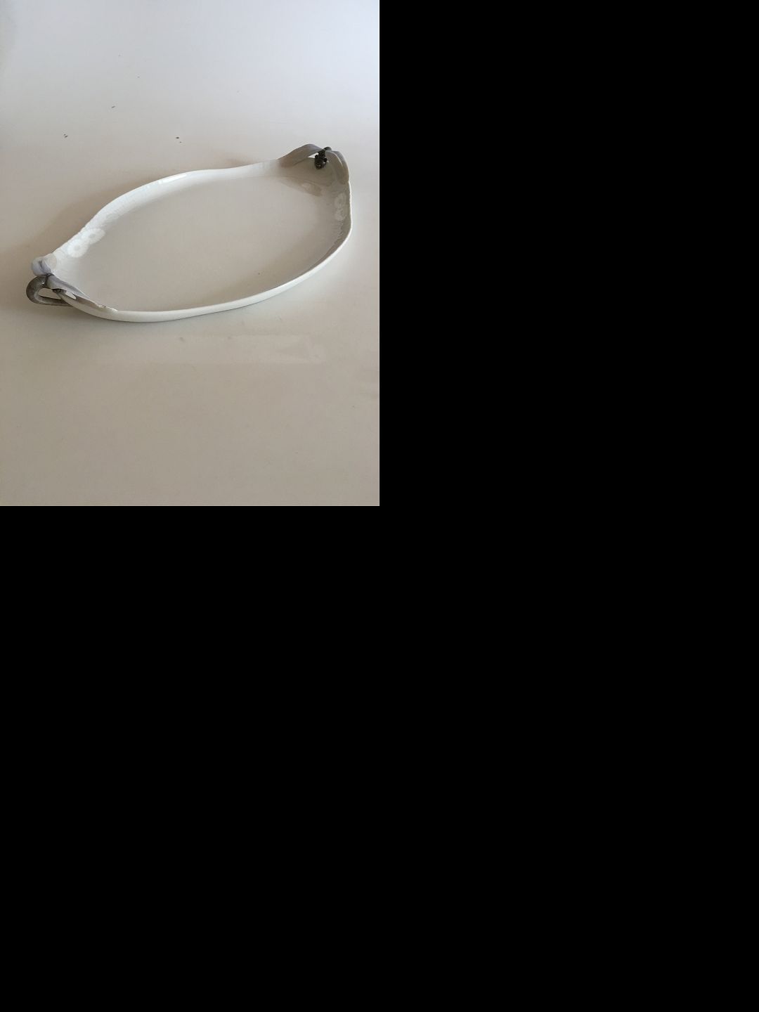 Early Royal Copenhagen Midsummernightsdream Oval Tray with Dragonflies. Blue Tone. 44.5 x 24.5 cm. Theres is a small notch in each end of the tray on the wing of the dragonfly (look at picture). All in all the tray presents itself beautifully.