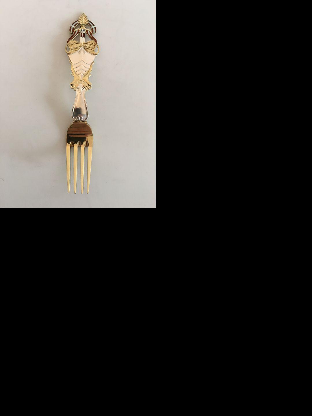 Anton Michelsen Christmas Fork 1921 Gilded Sterling Silver with Enamel.