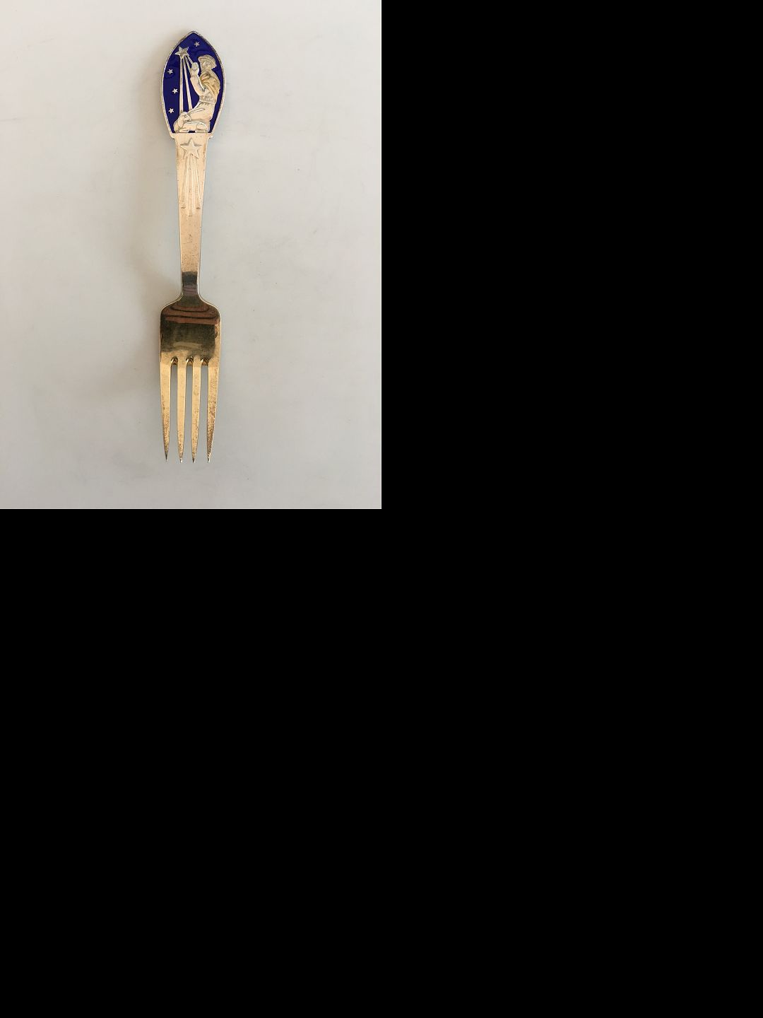 Anton Michelsen Christmas Fork 1935 Gilded Sterling Silver with Enamel