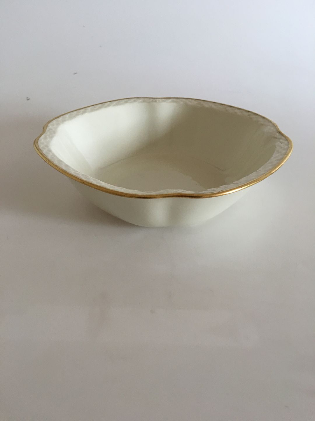 Bing and Grøndahl Aakjær Large Potato/Vegetable Bowl No. 43. Cream colored with gold rim. In fine condition. Measures 25.5 x 8 cm / 10.03 in. x 3.14 in.