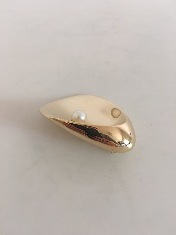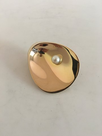 Georg Jensen 18K Gold Nanna Ditzel Brooch with Pearl No 1328. 4.5 x 5.3 cm (1 49/64" x 2 3/32")