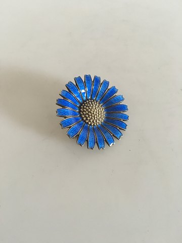 Anton Michelsen Gilded Silver Brooch with Blue Enamel. 3.3 cm dia (1 19/64"). Weighs 9 g / 0.30 oz