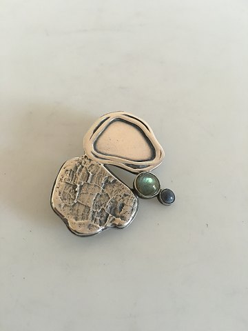 Valdres Silversmithy, Norway Sterling Silver Brooch with Stones. Measures 4.2 cm / 1 21/32 in. x 3.4 cm / 1 11/32 in. Weighs 12 g / 0.42 oz. In Perfect Condition