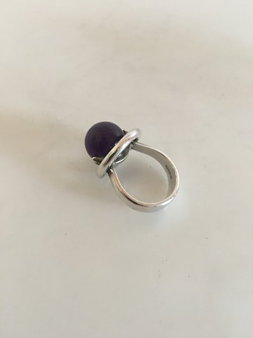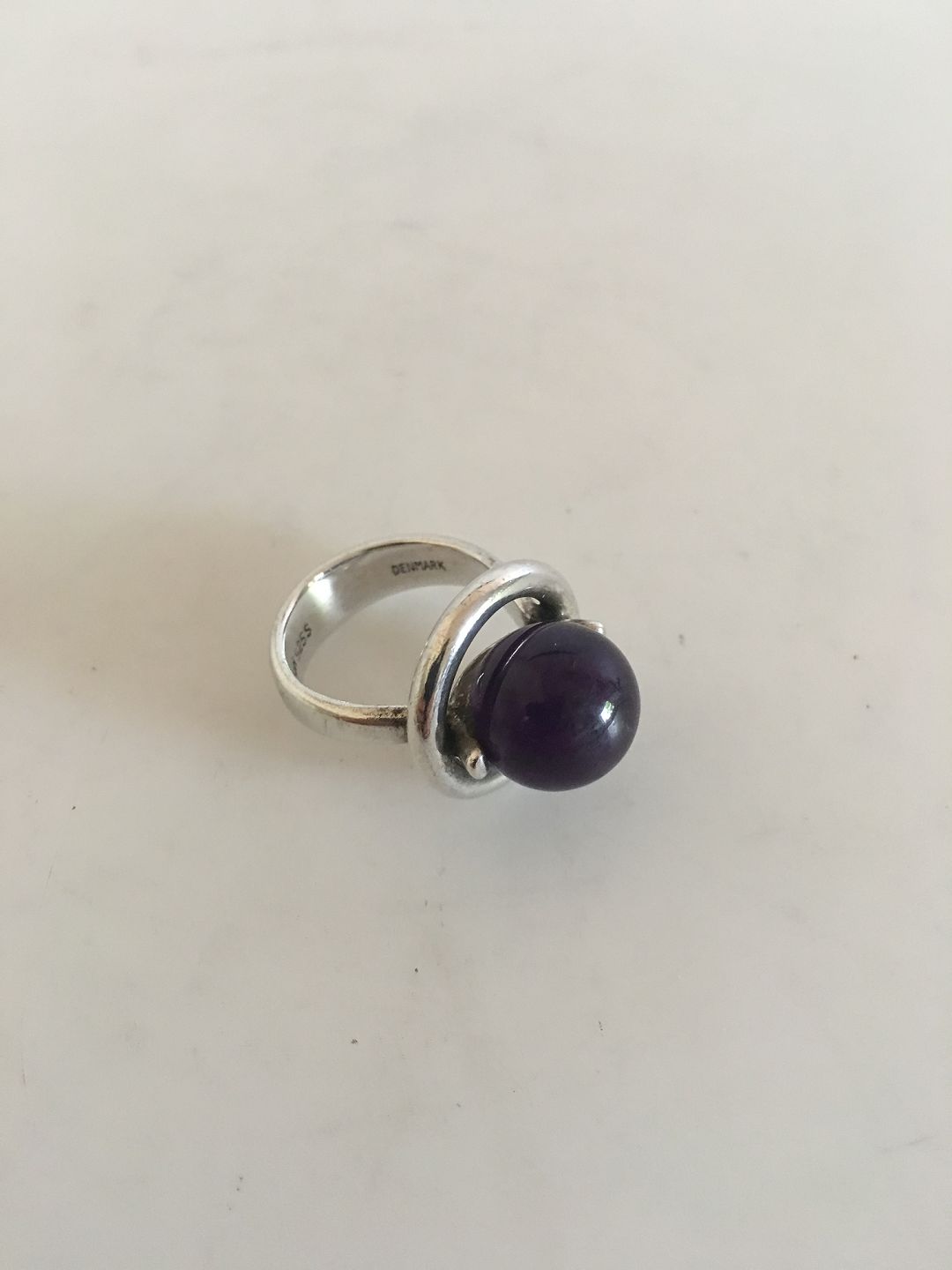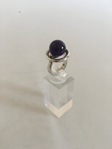 Hans Hansen Sterling Silver Ring with Amethyst. Ring Size 54 / US 6 3/4. Weighs around 10 g / 0.35 oz.