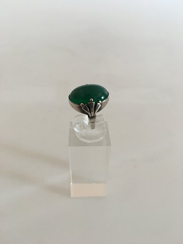 Georg Jensen Sterling Silver Ring No 51 with Green Agate. Ring Size 44 / US 3. Weighs 6 g / 0.20 oz. From after 1945.