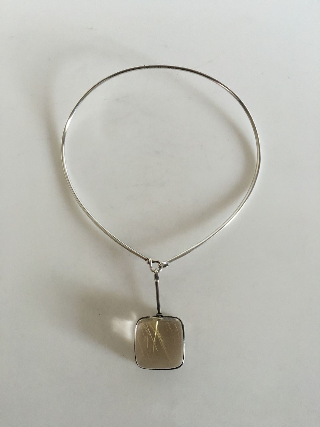 Georg Jensen Sterling Silver Torun Neckring No 174 with Pendant No 132. In Rutil Quartz.The neckrings diameter is 15 cm (5 29/32"). The pendant measures 3.5 x 3.5 cm (1 3/8")
