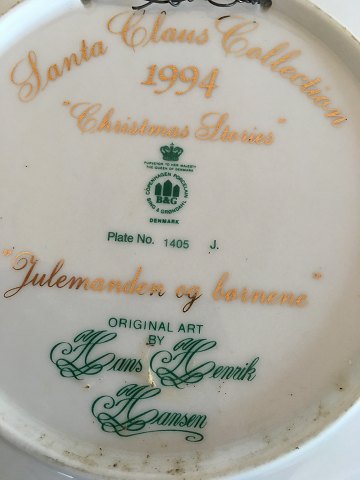Bing and Grondahl Santa Claus Collection 1994 Plate - Christmas Stories. Designed by Hans Henrik Hansen. 20 cm (7 7/8 in.)