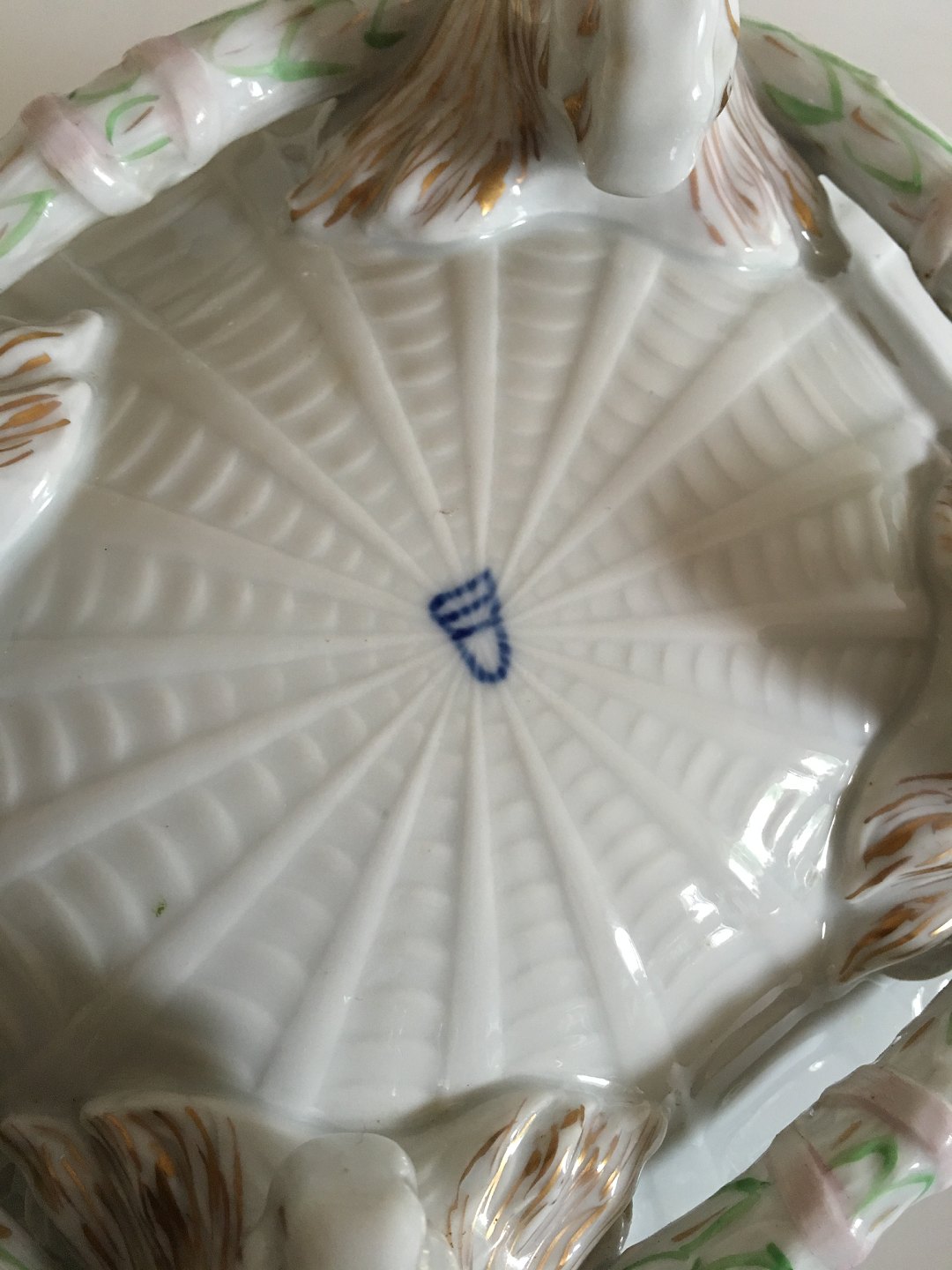 Pierced Footed bowl with Flower Ranks and Ram Heads. 37 cm dia (14 9/16"). 20 cm H (7 7/8"). In very nice condition.