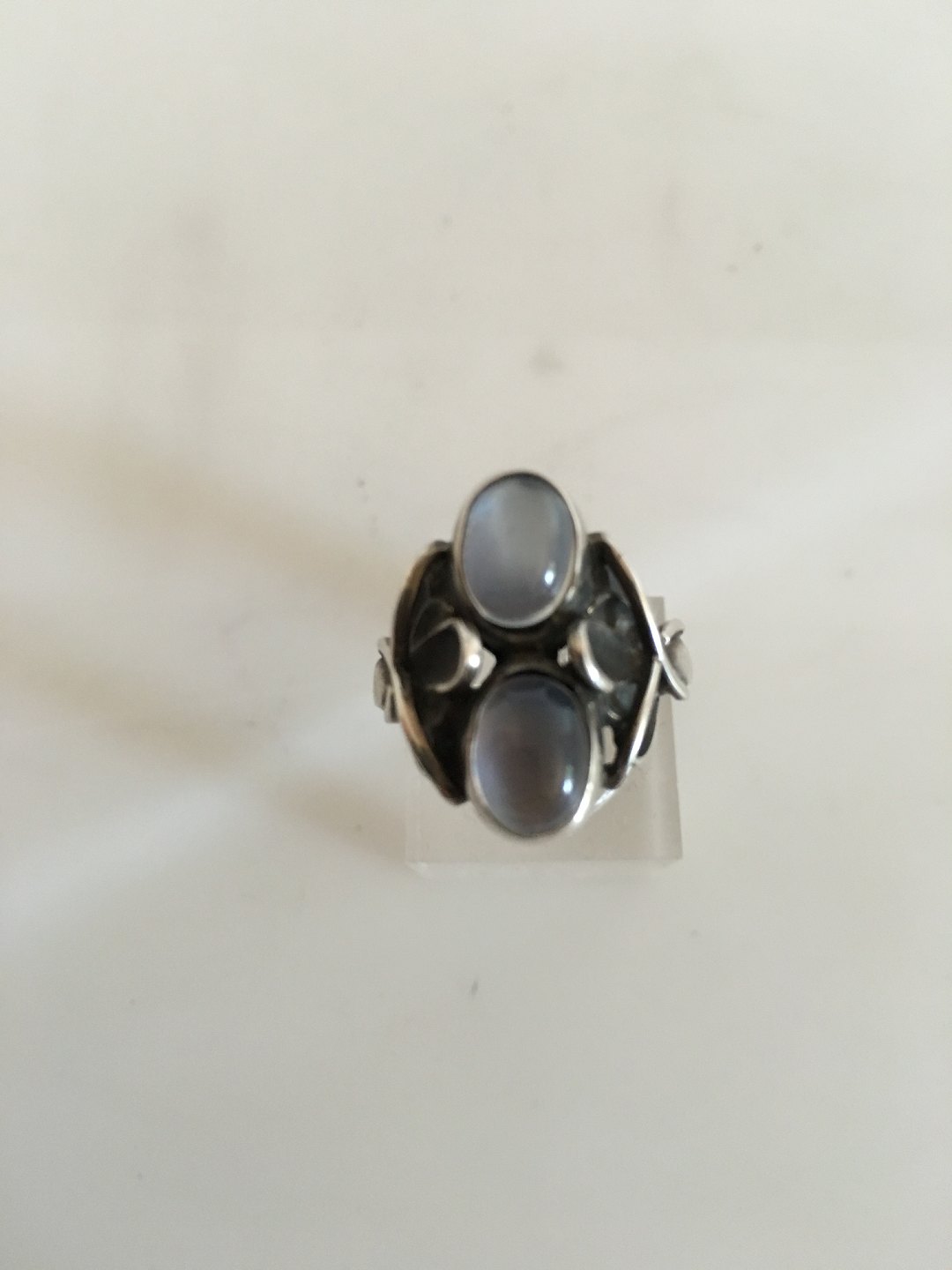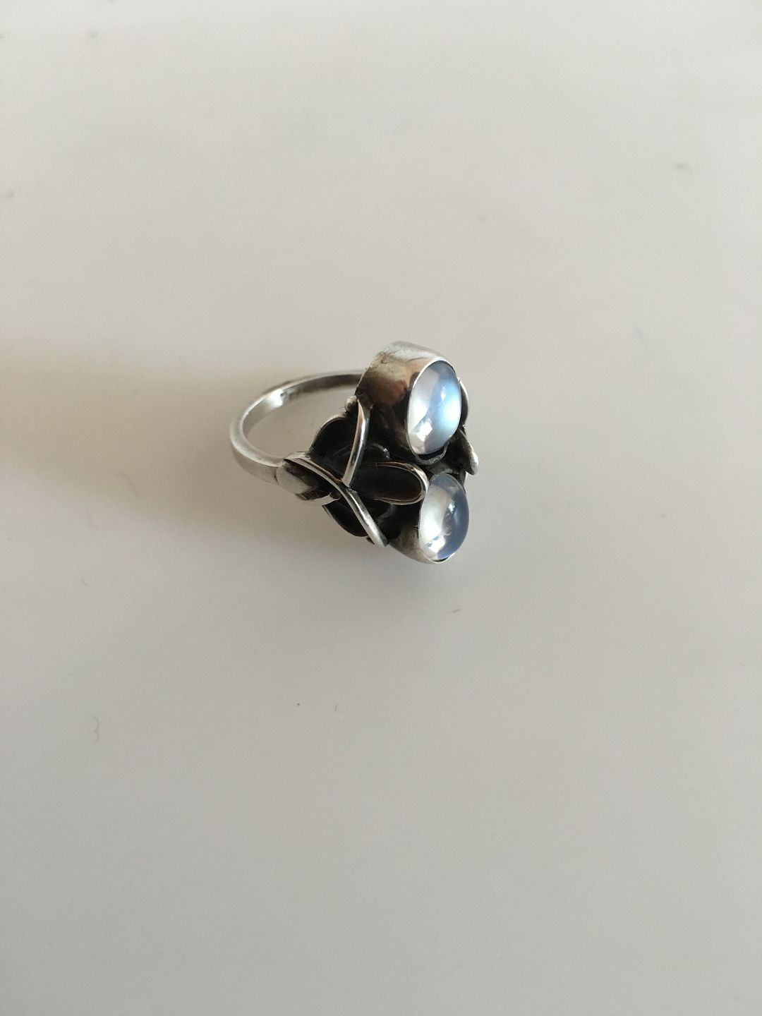 Georg Jensen Sterling Silver Ring with Moonstones No 48. Ring Size 53 / US 6 1/2. Weighs 6 g / 0.20 oz. From after 1945.