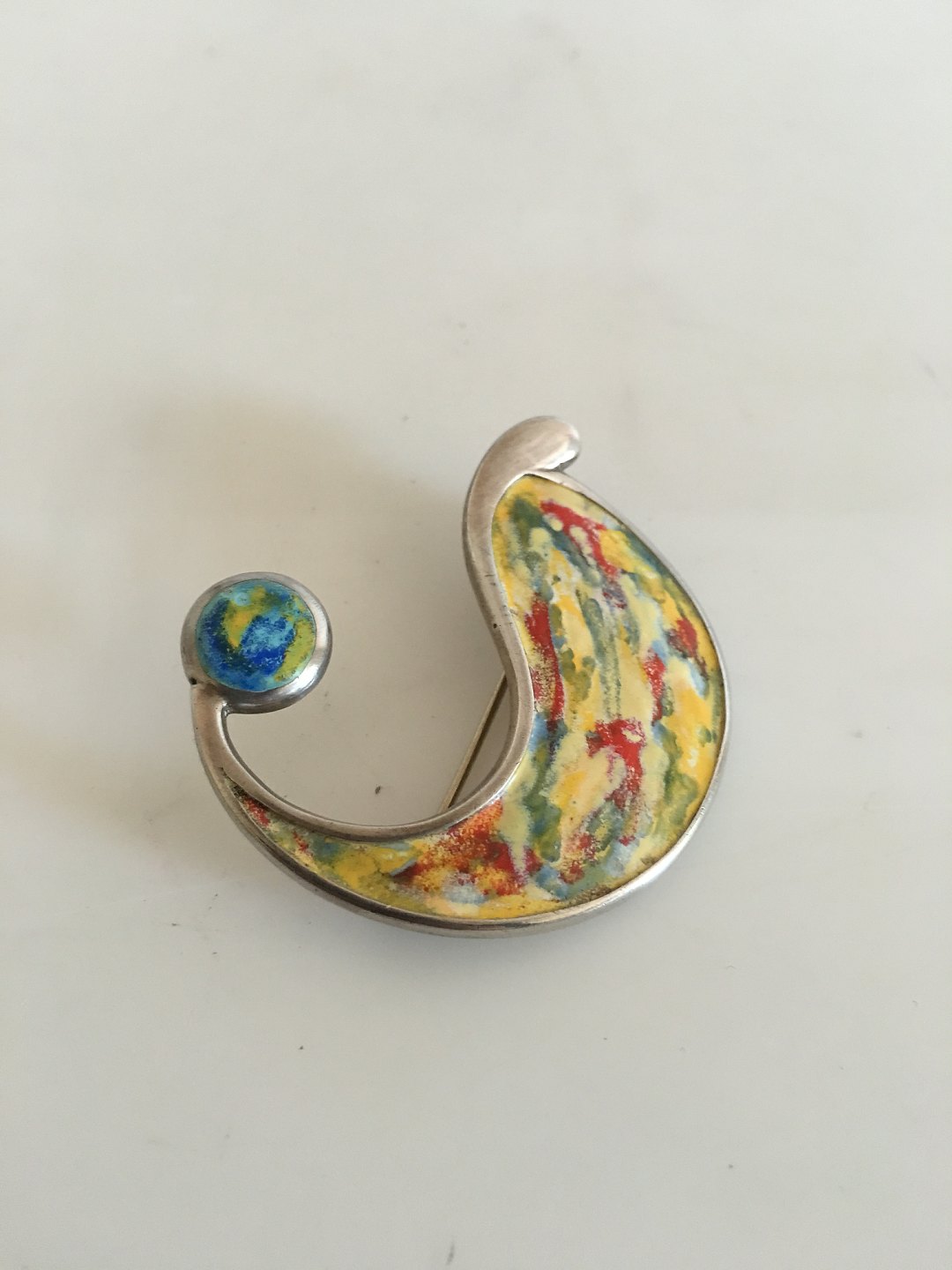 F. Hingelberg Sterling Silver and Enamel Brooch. Measures 5 x 4 cm (1 31/32" x 1 37/64"). Weighs 19 g (0.65 oz)