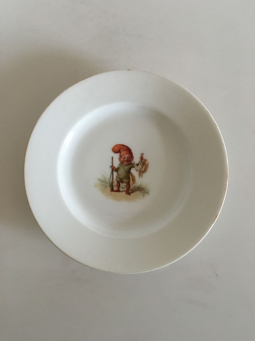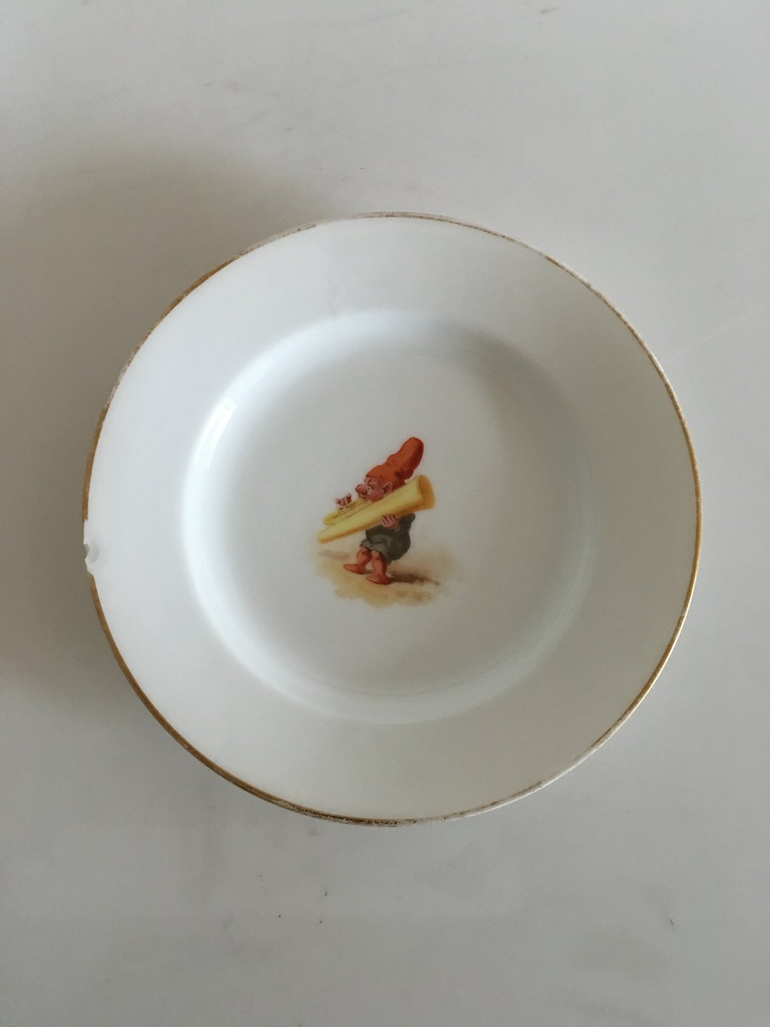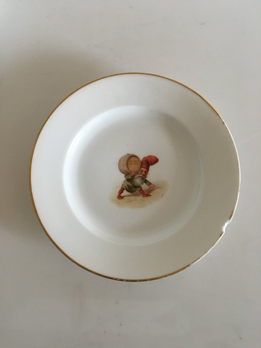 5. Plate 20.5 cm (8 5/64"). Gnome with dish with meat cuttings. The gold is worn and the plate has two chips along the border edge.