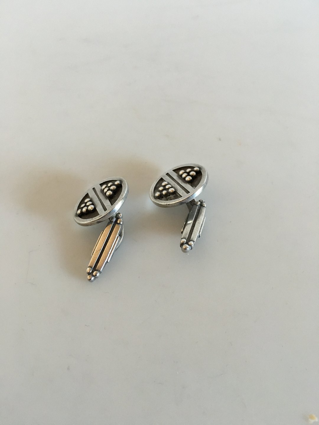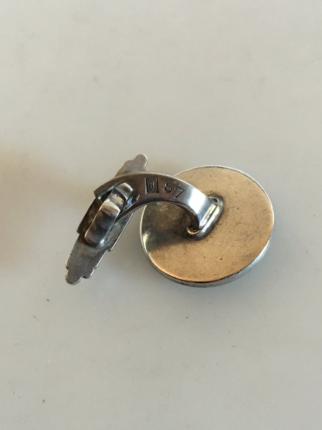 Georg Jensen Silver Cuff Links No 57. From 1933-1944. Measures 1.6 cm dia (0 5/8"). Weighs 12 grams (0.40 oz).