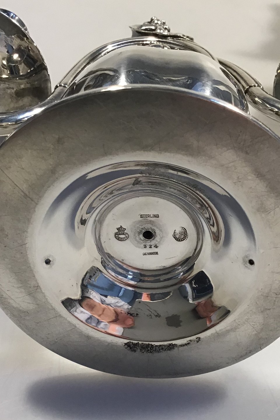 A Pair of Georg Jensen Sterling Silver Pomegranate Patterned Candelabras No 324. These are from 1925-1932. The Pomegranate and Grapes design made by Georg Jensen in 1919. 22.5 cm high (9"). Combined weight 2246 gr /79.22 oz