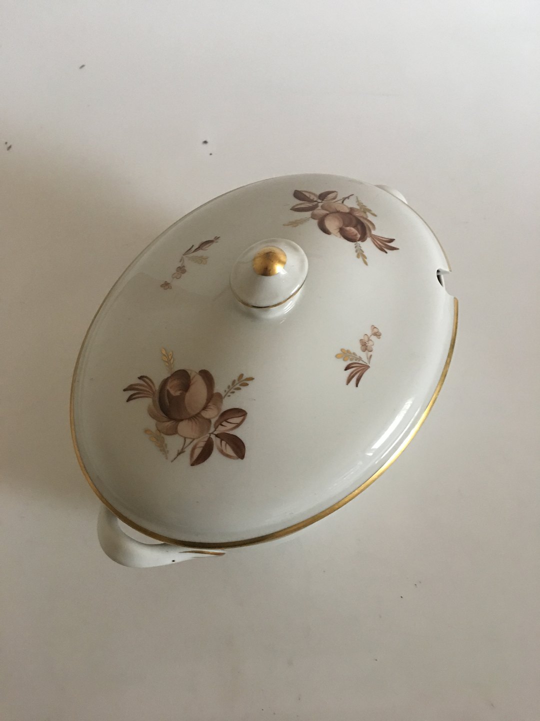 Royal Copenhagen Brown Rose Oval Soup Tureen No 9347. 10 cm H (3 15/16"). 26.5 cm dia (10 7/16").