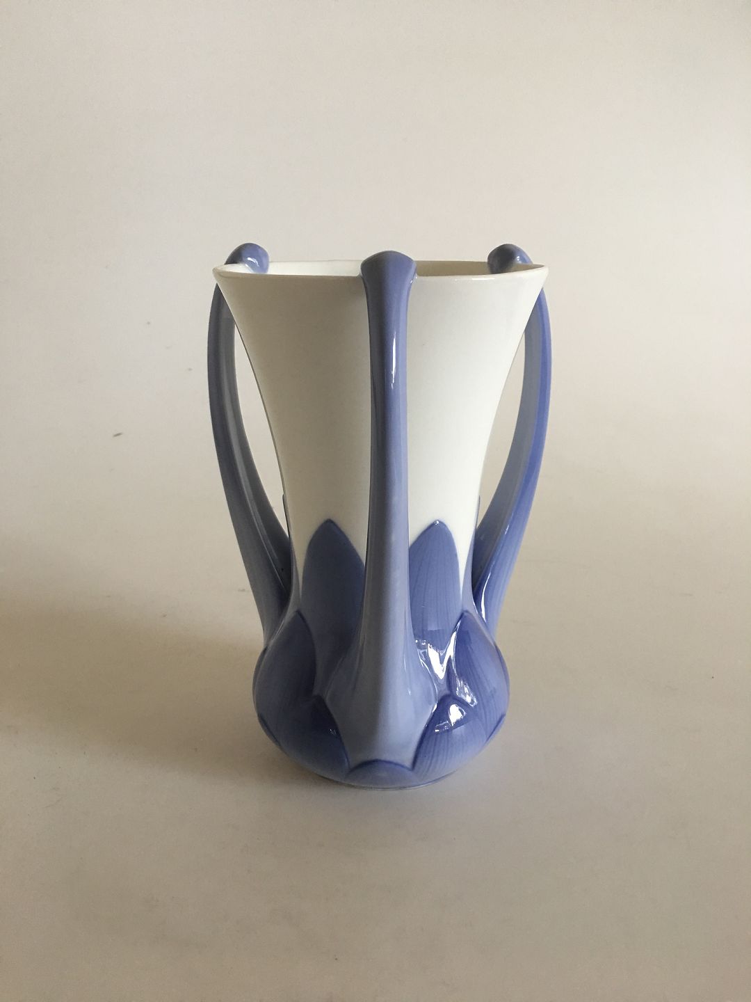 Royal Copenhagen Art Nouveau Three-handled vase No 9. Measures 17 cm / 6 11/16 in. x 10.5 cm / 4 9/64 in. dia. In perfect condition.