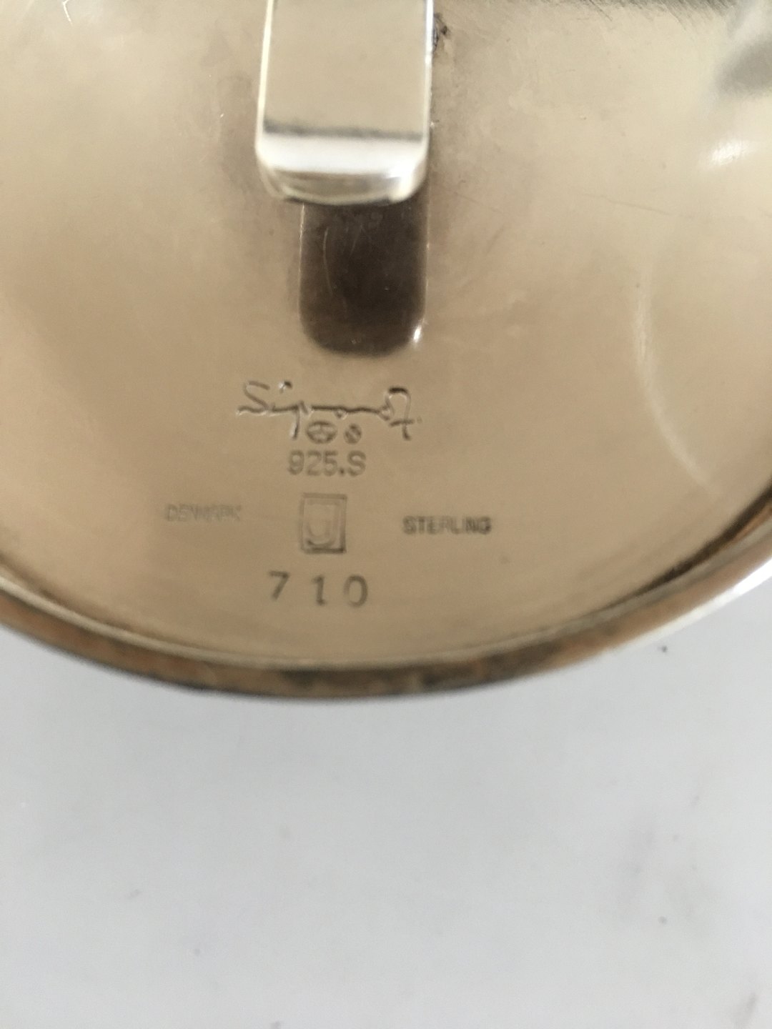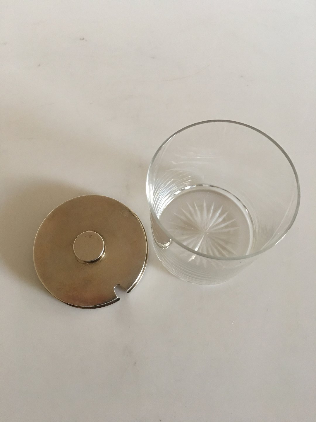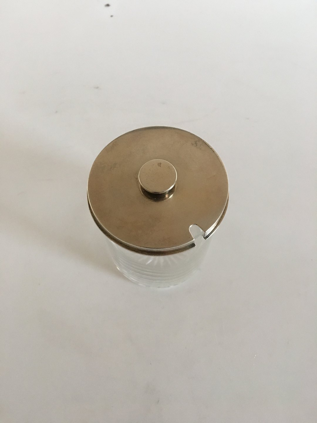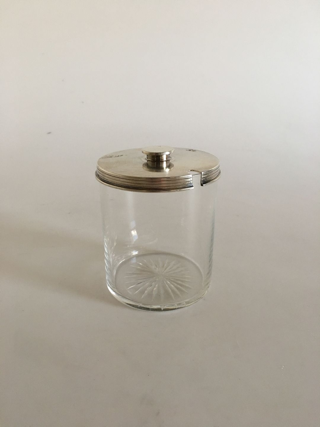 Georg Jensen Marmelade Glass with Sterling Silver Bernadotte Lid No 710. 9 cm H (3 35/64"). 7 cm dia (2 3/4"). Weighs 68 grams (2.40 oz)