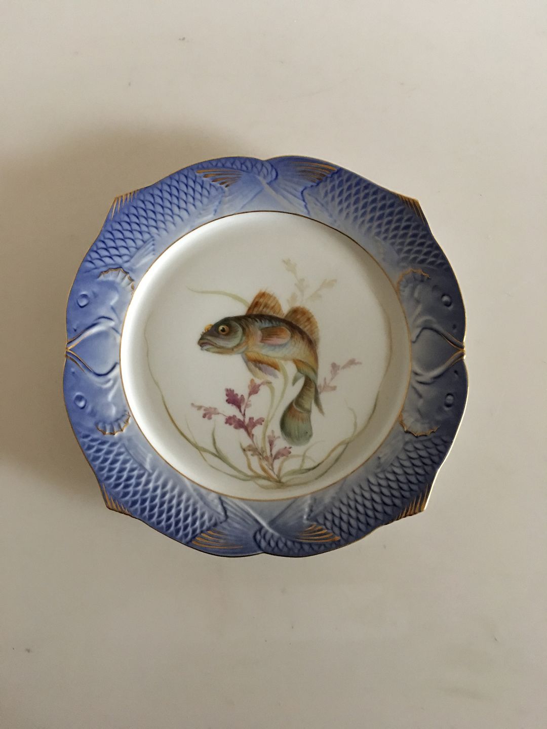 Royal Copenhagen Blue Fish Plate with Gold No 1212/3002. With Gobius Niger. 23 cm (9 1/16"). In perfect condition,