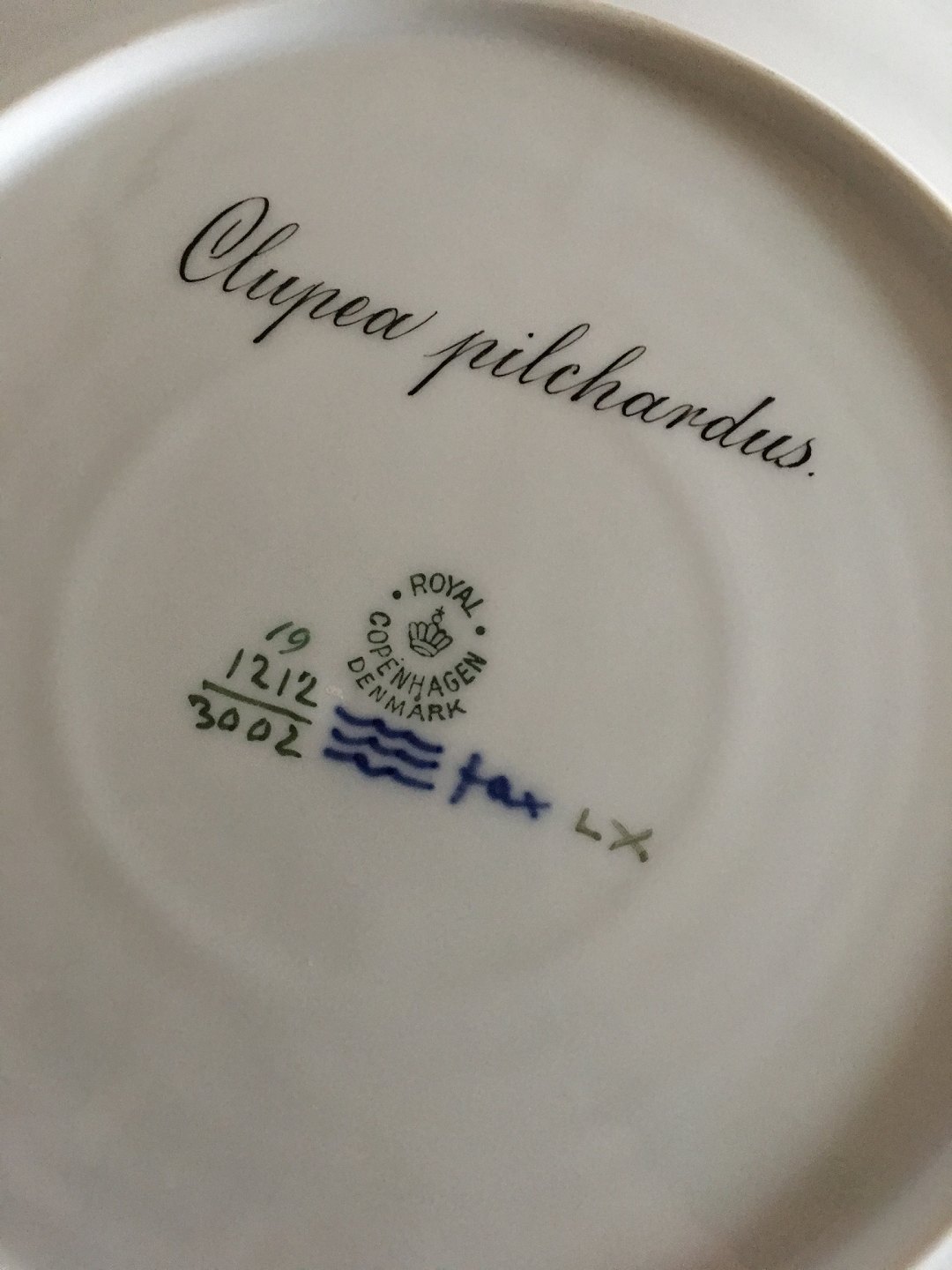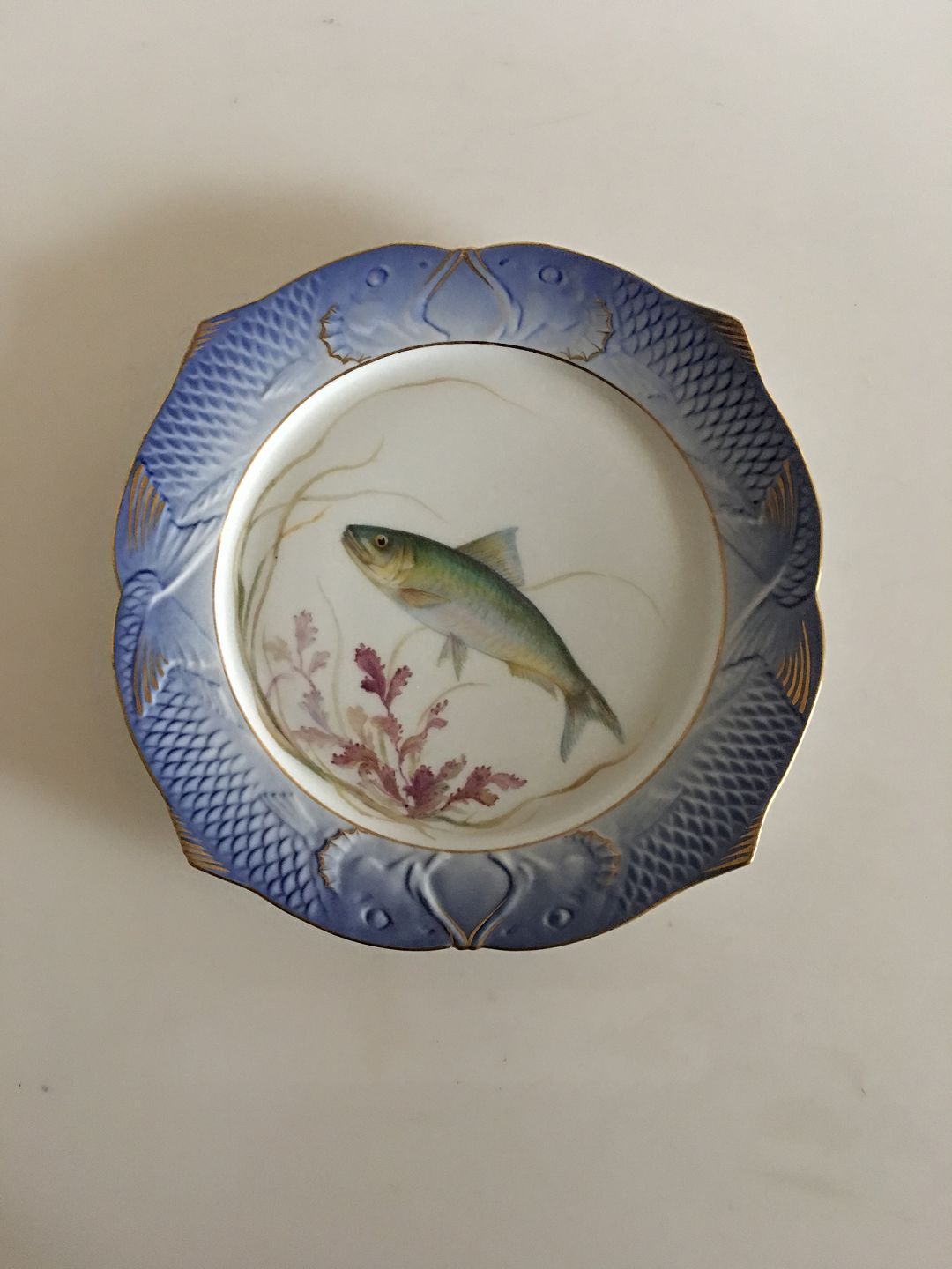 Royal Copenhagen Blue Fish Plate with Gold No 1212/3002. With Clupea Pilchardus. 23 cm (9 1/16"). In perfect condition.
