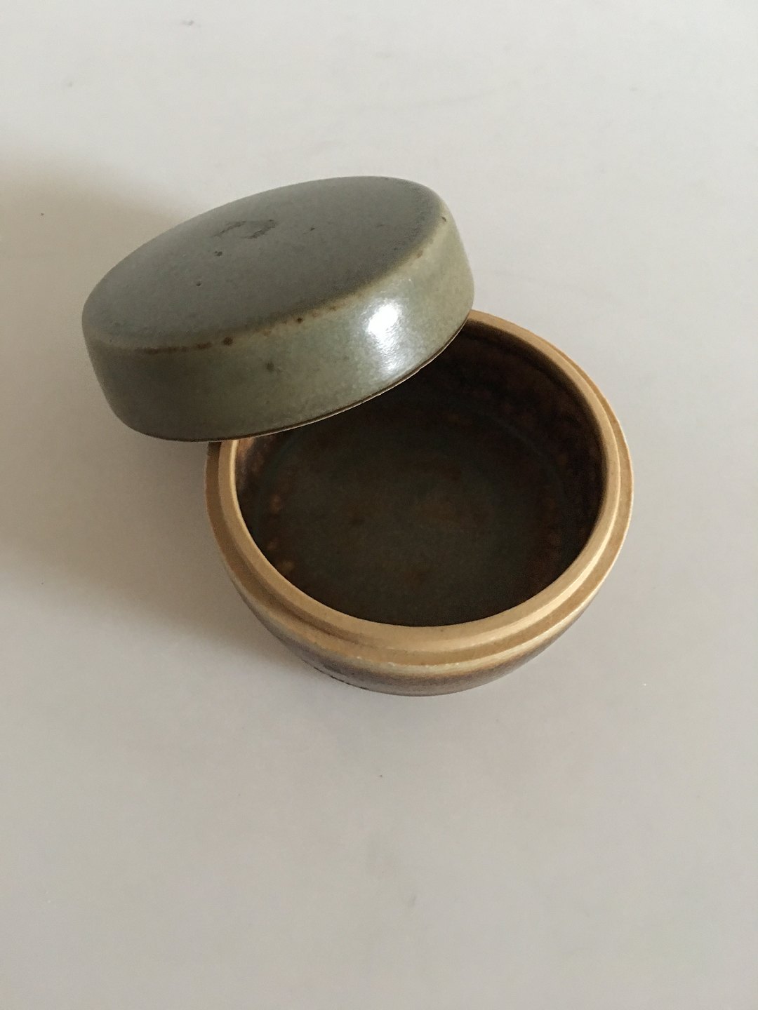 Bing & Grondahl Lidded Stoneware Box No 5810. 5 cm H (1 31/32"). 8 cm dia (3 5/32"). In good condition