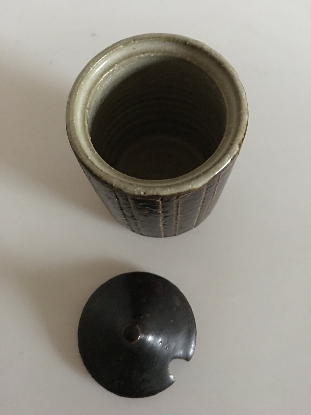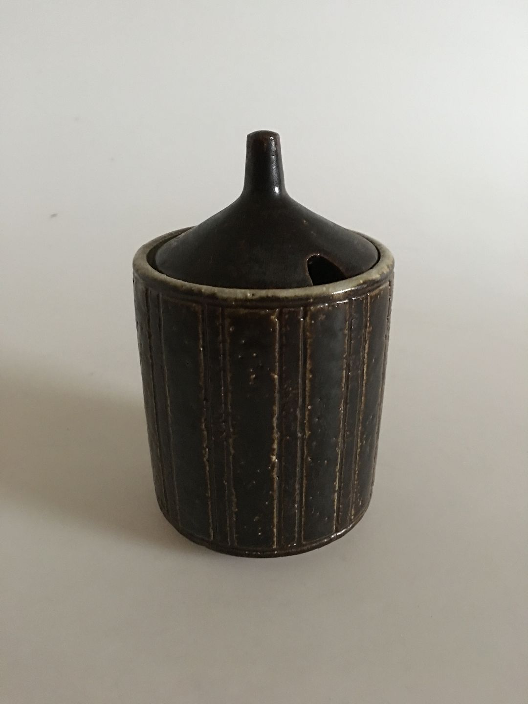 Palshuus Denmark Stoneware Marmelade Jar. 14.5 cm H (5 45/64") 8.5 cm dia (3 11/32"). In good condition.