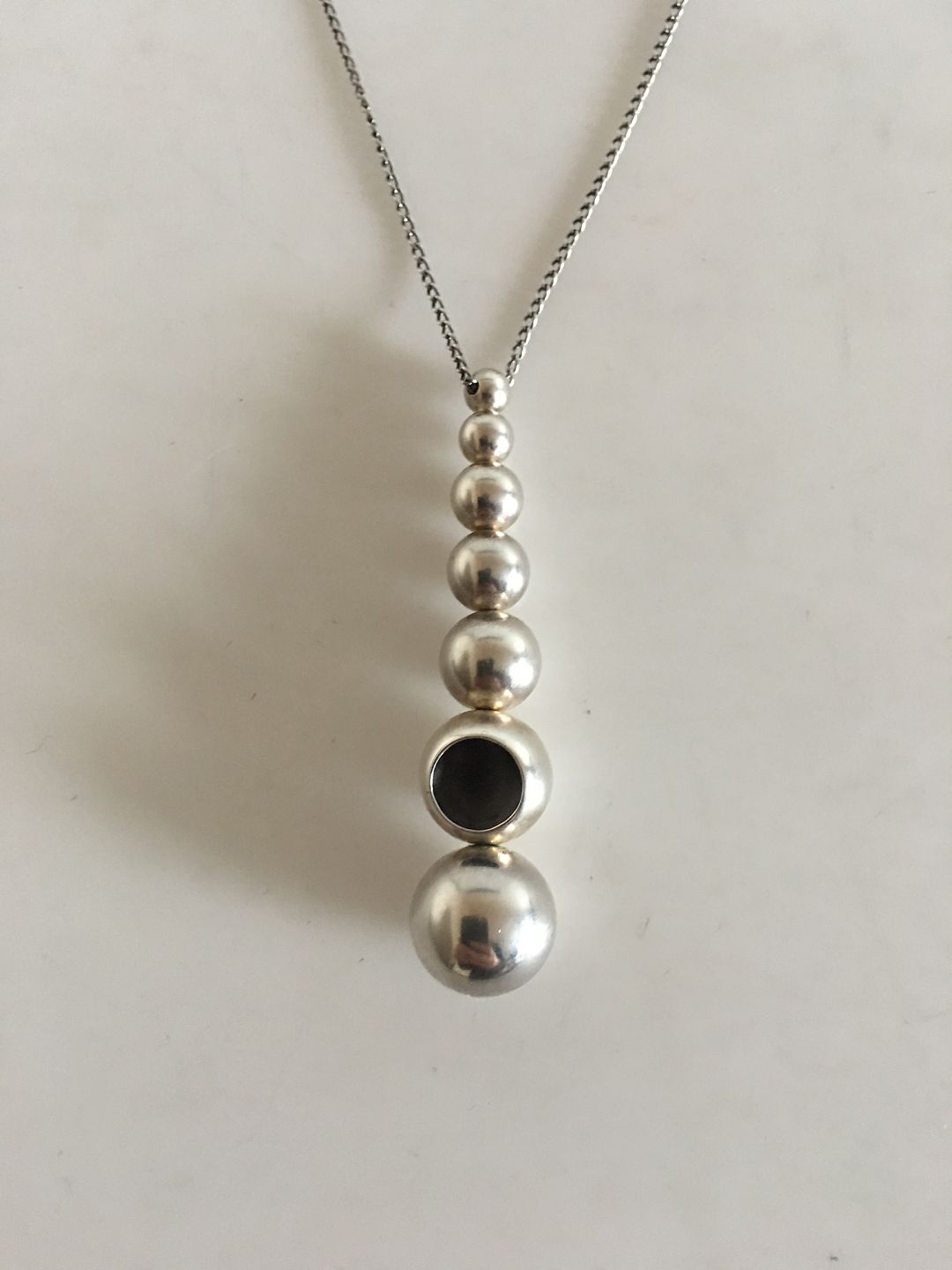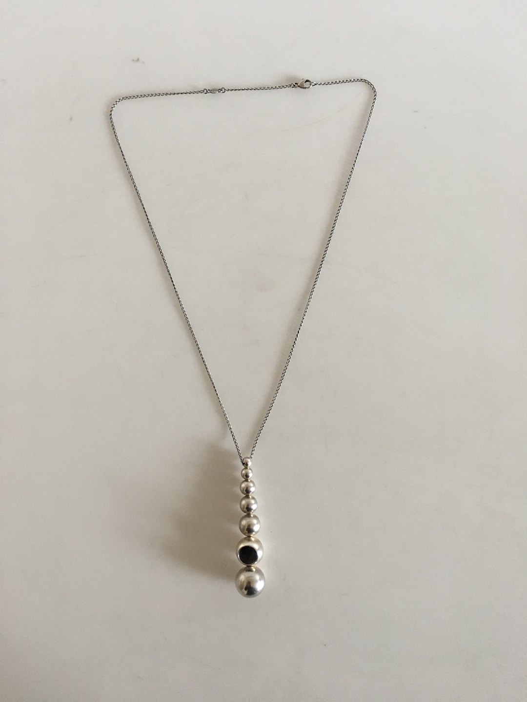 Georg Jensen Sterling Silver Cava Necklace. The Chain measures 51 cm L (20 5/64"). The pendant measures 6.5 cm L (2 9/16"). Weighs 18 grams (0.65 oz).