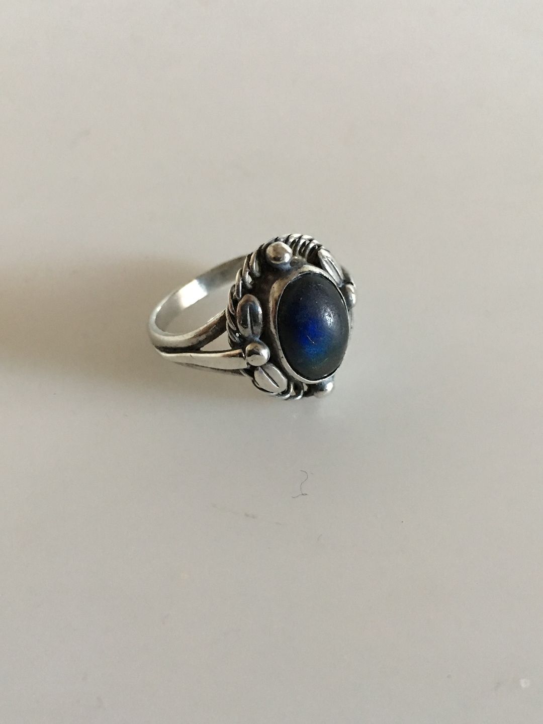 Georg Jensen Sterling Silver Ring No 1 with a Shimmering Blue Stone. From 1932-1944. Ring Size 57 / US 8. Weighs 4.9 g / 0.17 oz.
