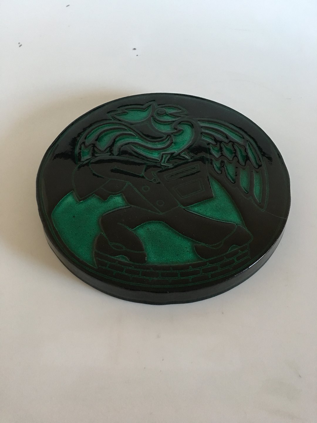 Royal Copenhagen Henry Heerup Stoneware Relief No 22227. Green and Black Pattern. 1st Quality in perfect condition. 28 cm dia (11 1/32")