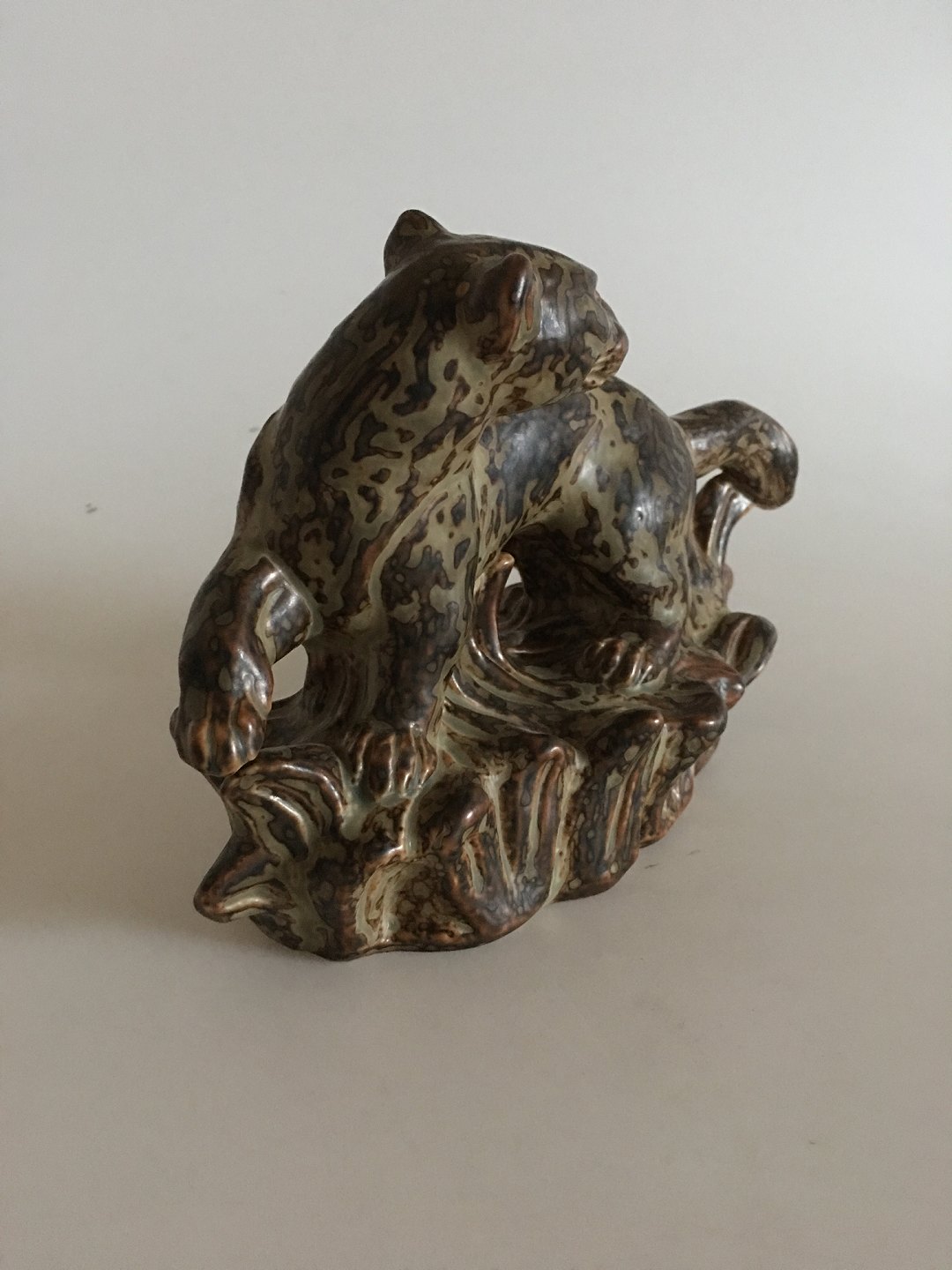 Royal Copenhagen Knud Kyhn Stoneware Figurine No. 21408 of Ferret. Measures 23 x 15 cm (9 1/16 in. x 5 29/32 in.) In perfect condition with Sung Glaze.