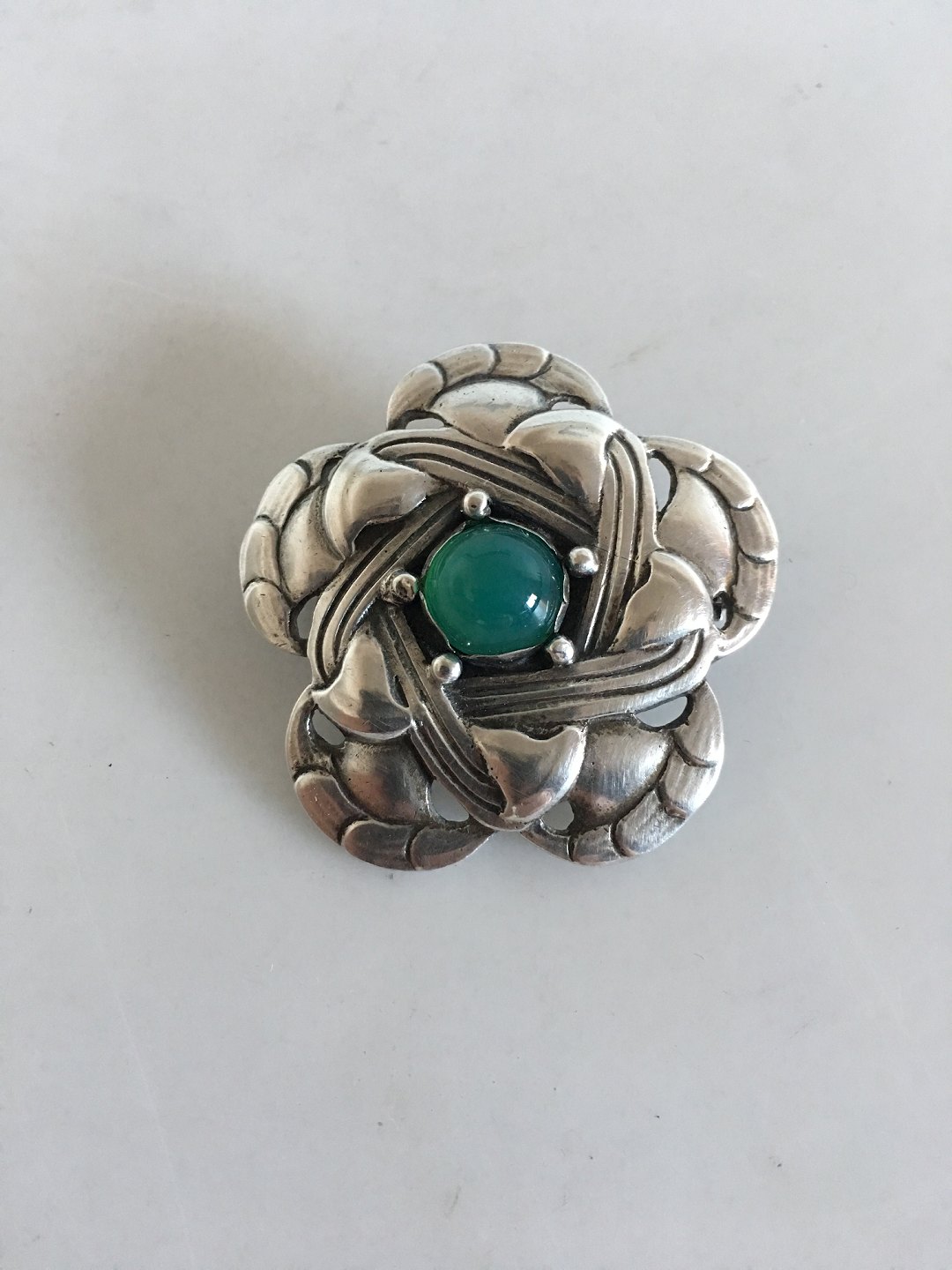 Georg Jensen Silver Brooch No 12 with Green Agate. From 1915-1927. Measures 4 cm (1 37/64"). Weighs 14 grams / 0.50 oz