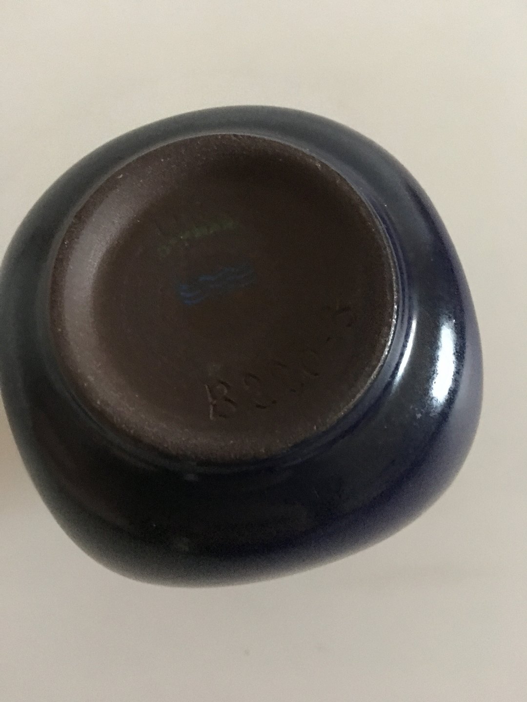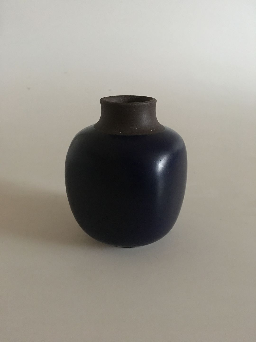 Royal Copenhagen Small Stoneware Vase No 21590/B220-3. With Dark Bue Glaze. 8.5 cm H (3 11/32"). In perfect condition. 1st Quality.