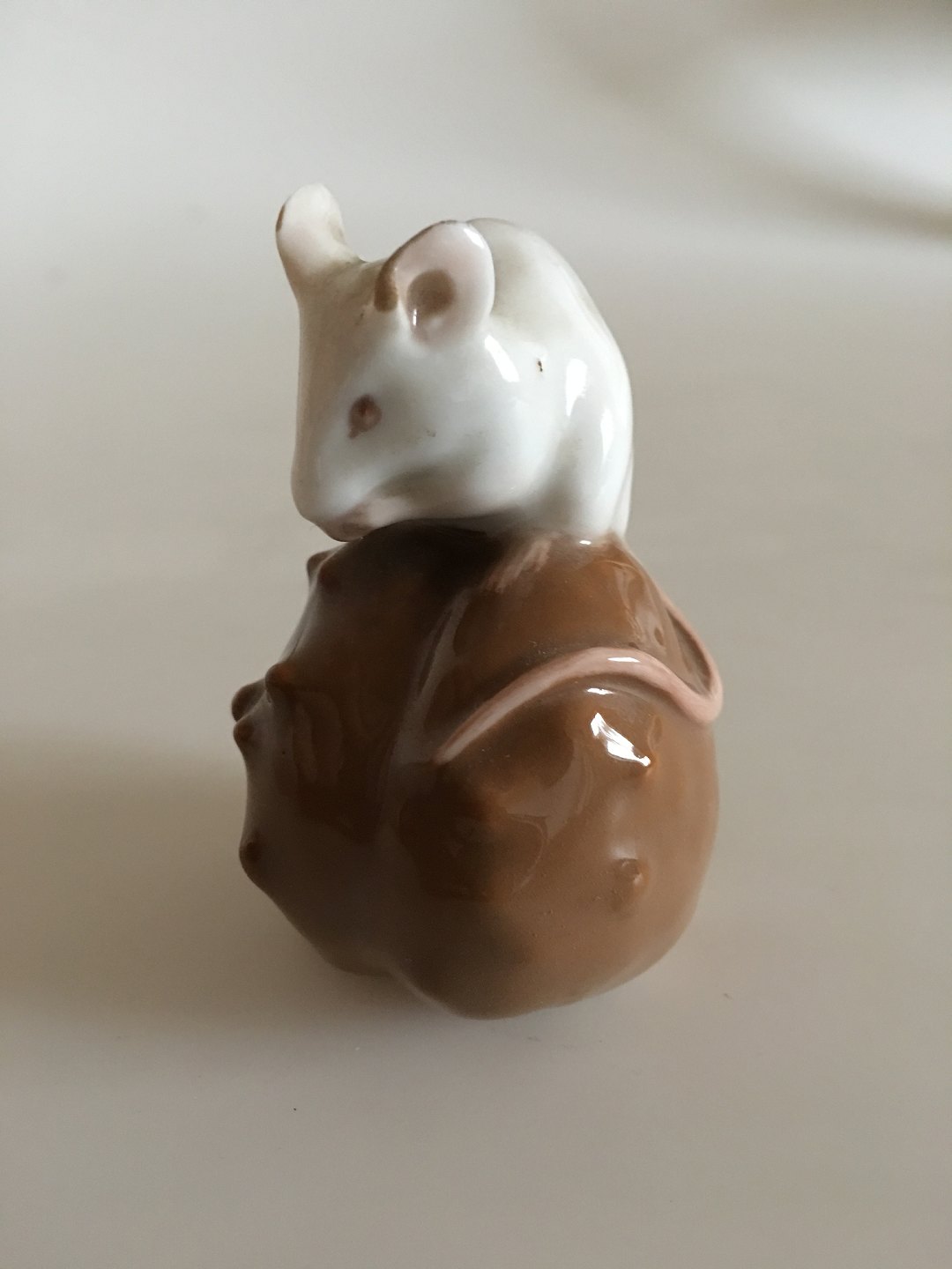 Royal Copenhagen Figurine of Mouse on Brown Chestnut No 511. 1st Quality. The Mouse has a reparation on the ear, otherwise in good condition. 7 cm Tall (2 3/4")