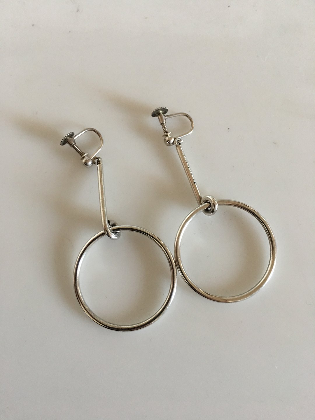 Bent Knudsen Sterling Silver Ear Screws. Measures 5.5 cm / 2 11/64". The circle's diameter is 3 cm / 1 3/16". Combined weight 10 g / 0.35 oz.