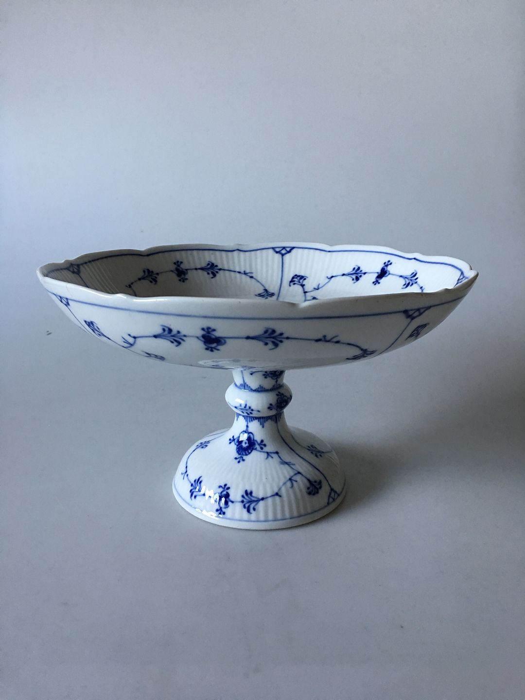 Royal Copenhagen Blue Fluted Plain Footed Cake Bowl No 458. 14 cm H (5 33/64"). 23 cm dia (9 1/16"). The bowl has an insignificant hairline on the side otherwise in good condition. 1st Quality.