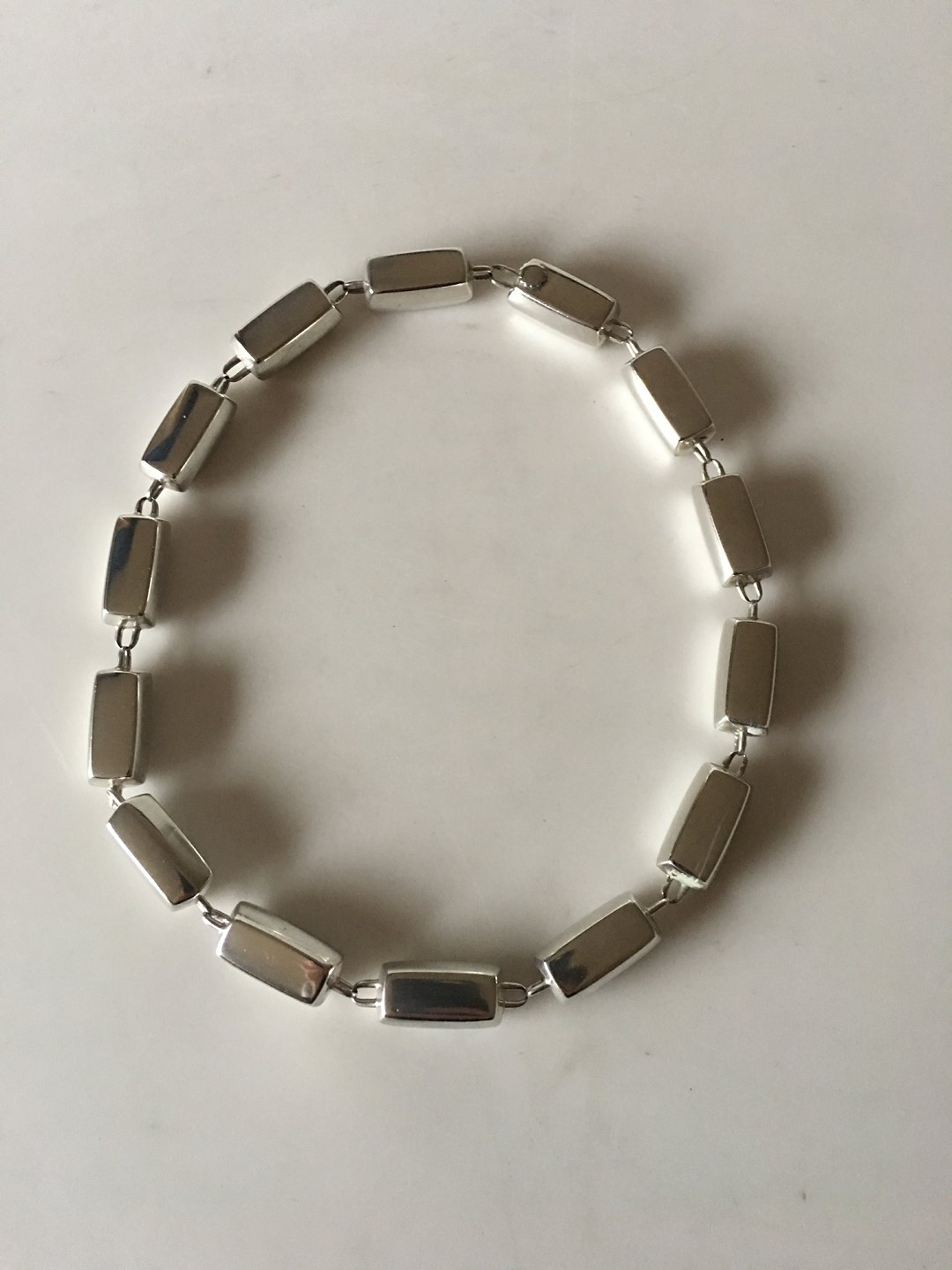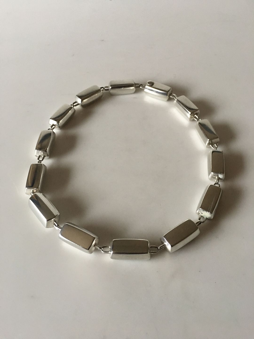 Hans Hansen Modern Sterling Silver Necklace. 52 cm L (20 15/32"). Weighs 115 grams (4 oz). In beautiful condition with only one bump in the silver "patron" link attached to the lock.
