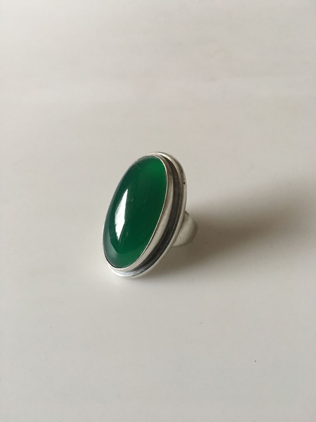 Georg Jensen Sterling Silver Ring No 46E with Large Green Agate. From after 1945. Size 53 (US Size 6 ½). Weighs 17 grams 0.60 oz)