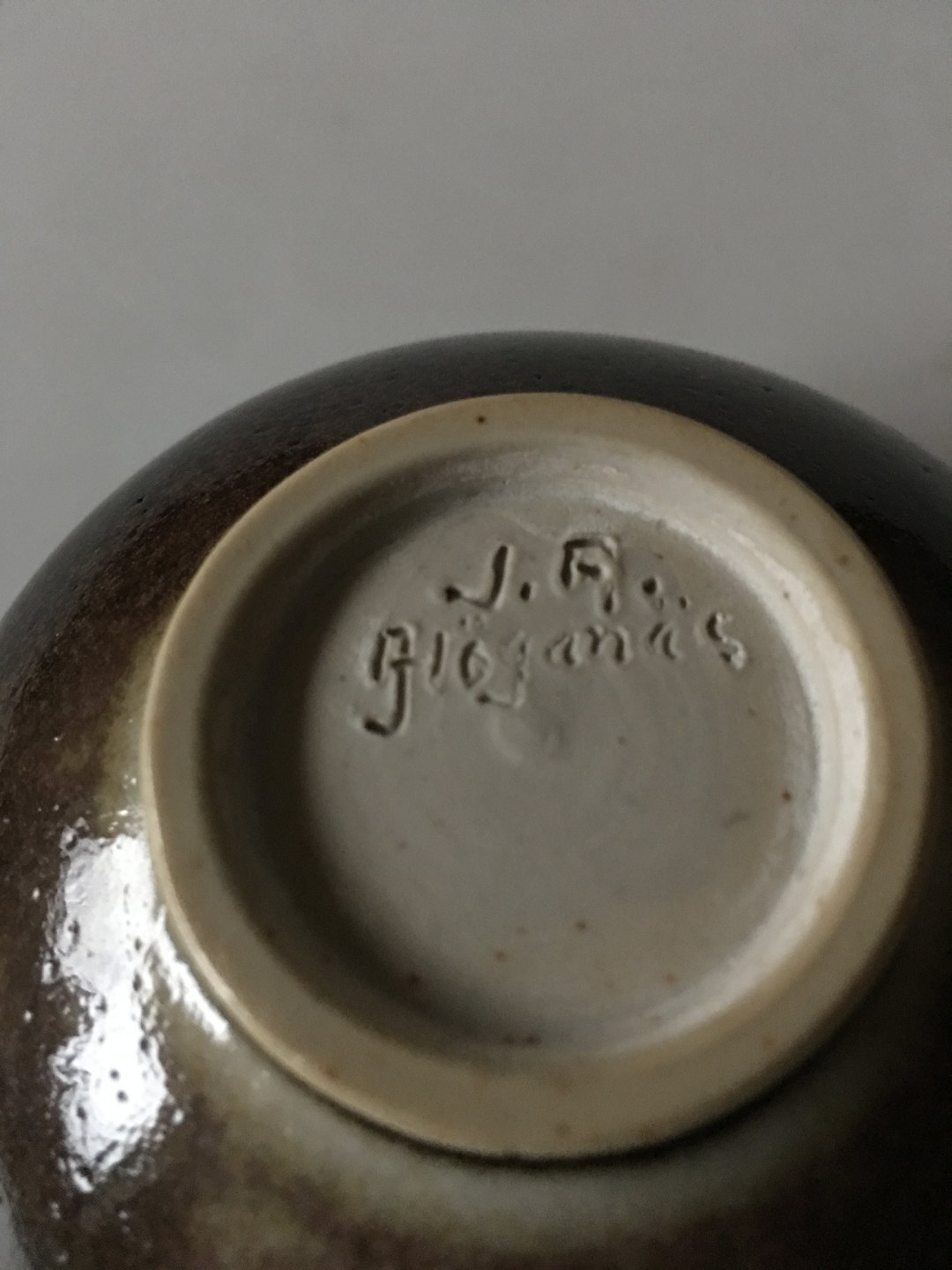 Hoganas Stoneware Bowl. In nice whole condition. Has a small burning mistake in the bottom of the bowl. 6.5 cm (2 9/16") H. 9 cm dia (3 35/64")