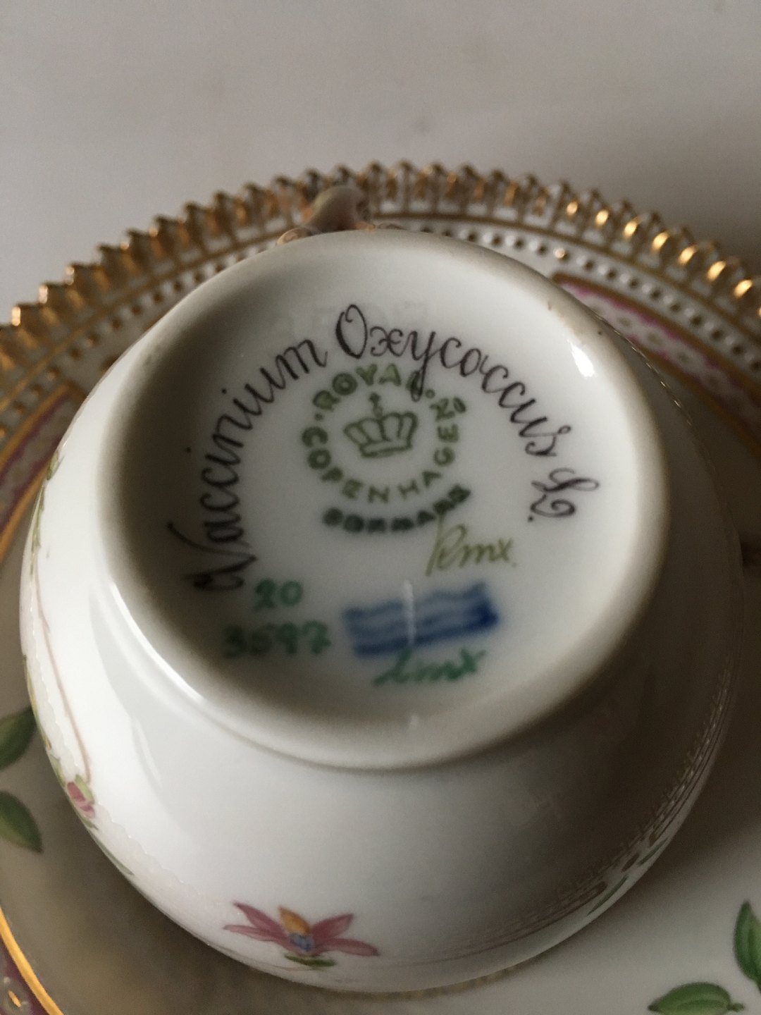 Royal Copenhagen Flora Danica Coffee Cup and Saucer No 20/3597. Latin Name: Vaccinium Oxycoccus. 2nd Quality. In perfect whole condition. 7 x 7 cm (2 3/4")