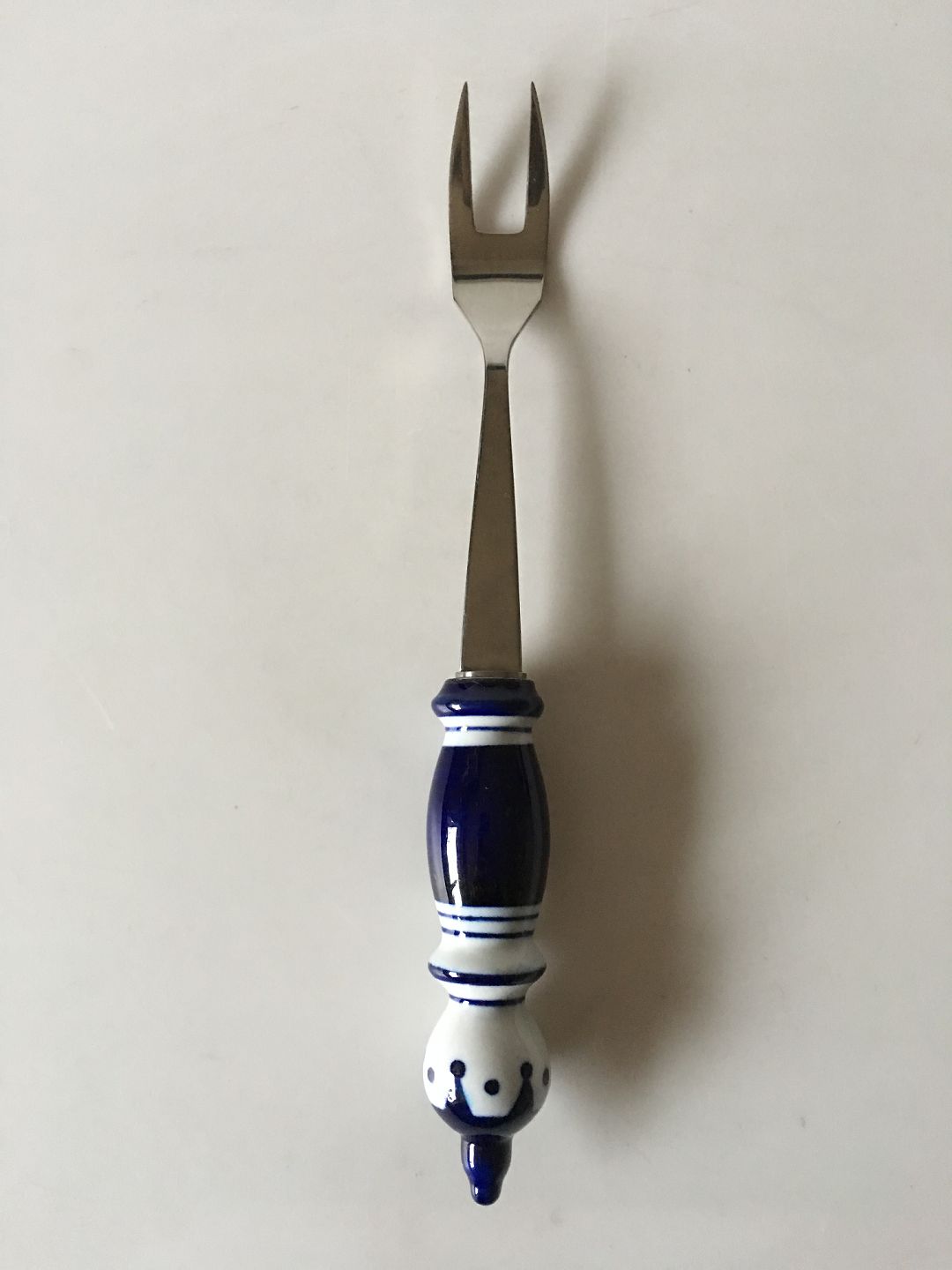 Rosenthal Blue Bjorn Wiinblad Siena Large Meat Fork in Ceramic and Stainless Steel. 26.5 cm L (10 7/16").