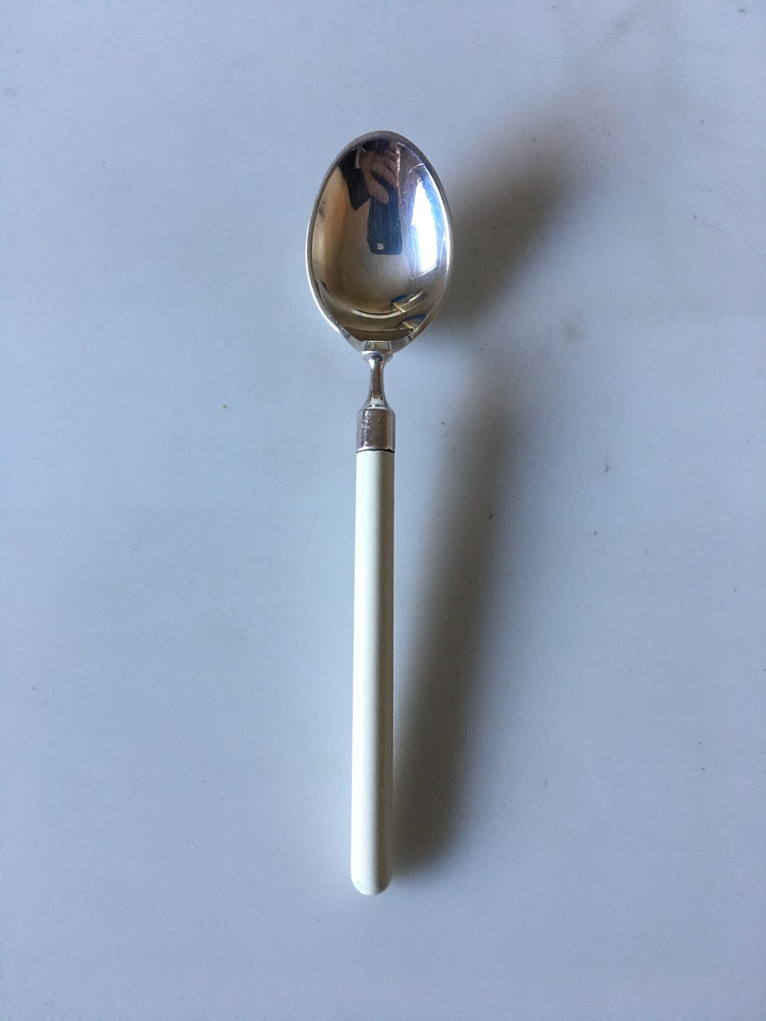 Hans Hansen Amalie Coffee Spoon. In Sterling Silver with White Plastic Handle. 9.6 cm L (3 25/32").