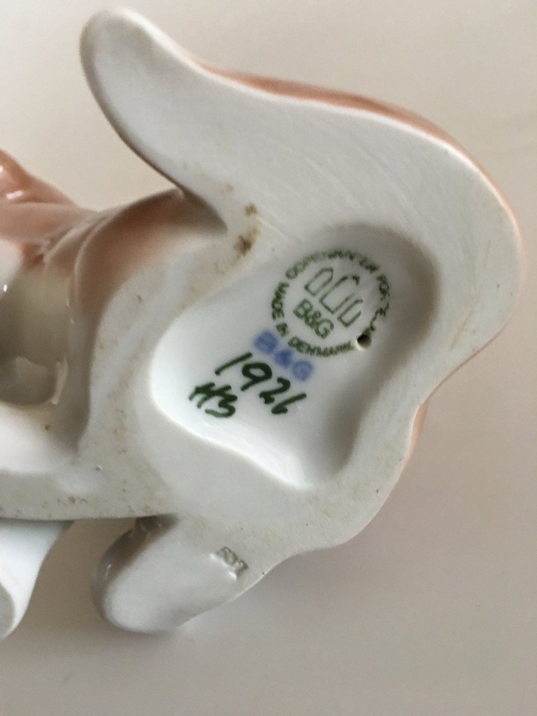 Bing & Grondahl Figure of Dog No 1921. 1st Quality. In perfect whole condition. This figurine has a warmer and more golden color than the other we have listed for sale. 12.5 cm H. (4 59/64").