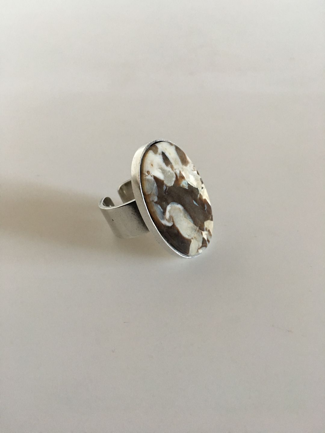 Georg Jensen Sterling Silver Ring No 188A with Coffee / Creme Colored Stone. From after 1945. Ring Size 55 / US 7. Weighs 18 g / 0.65 oz.