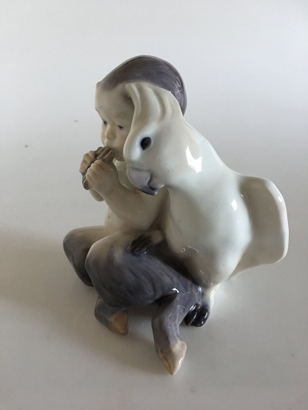 Royal Copenhagen Faun with Parrot No 2424. 1st Quality. In perfect condition. 16.5 cm H (6 1/2"). 14 cm W (5 33/64").