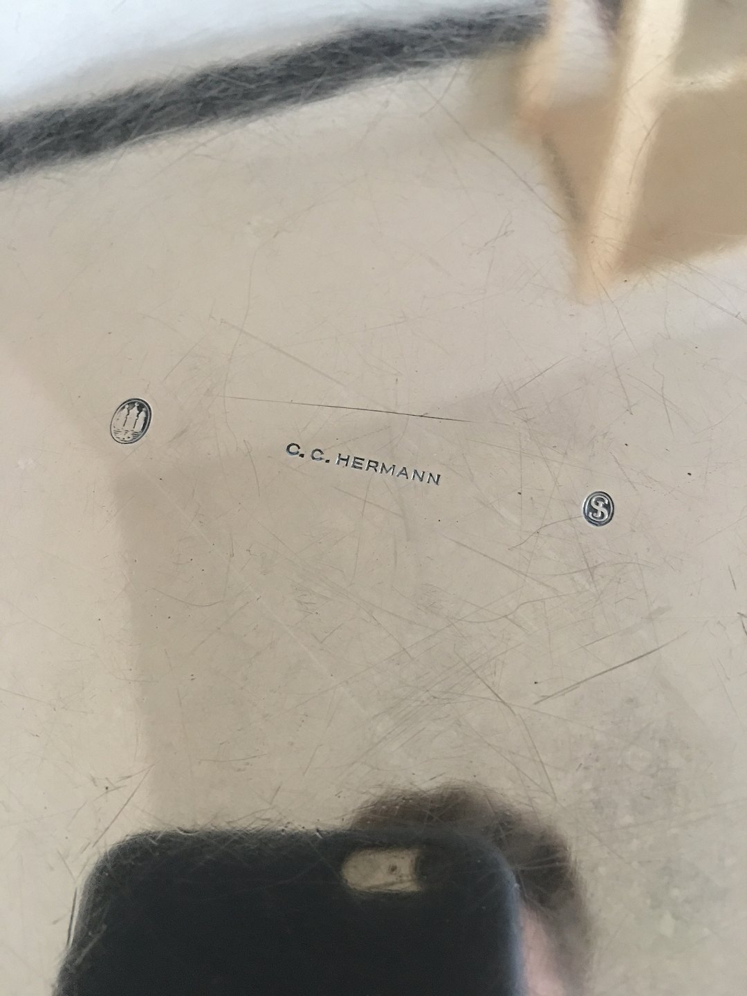 C.C. Herman Round Silver Tray. 40.5 cm dia (15 15/16"). In nice condition without any bumps. Weighs 1380 grams