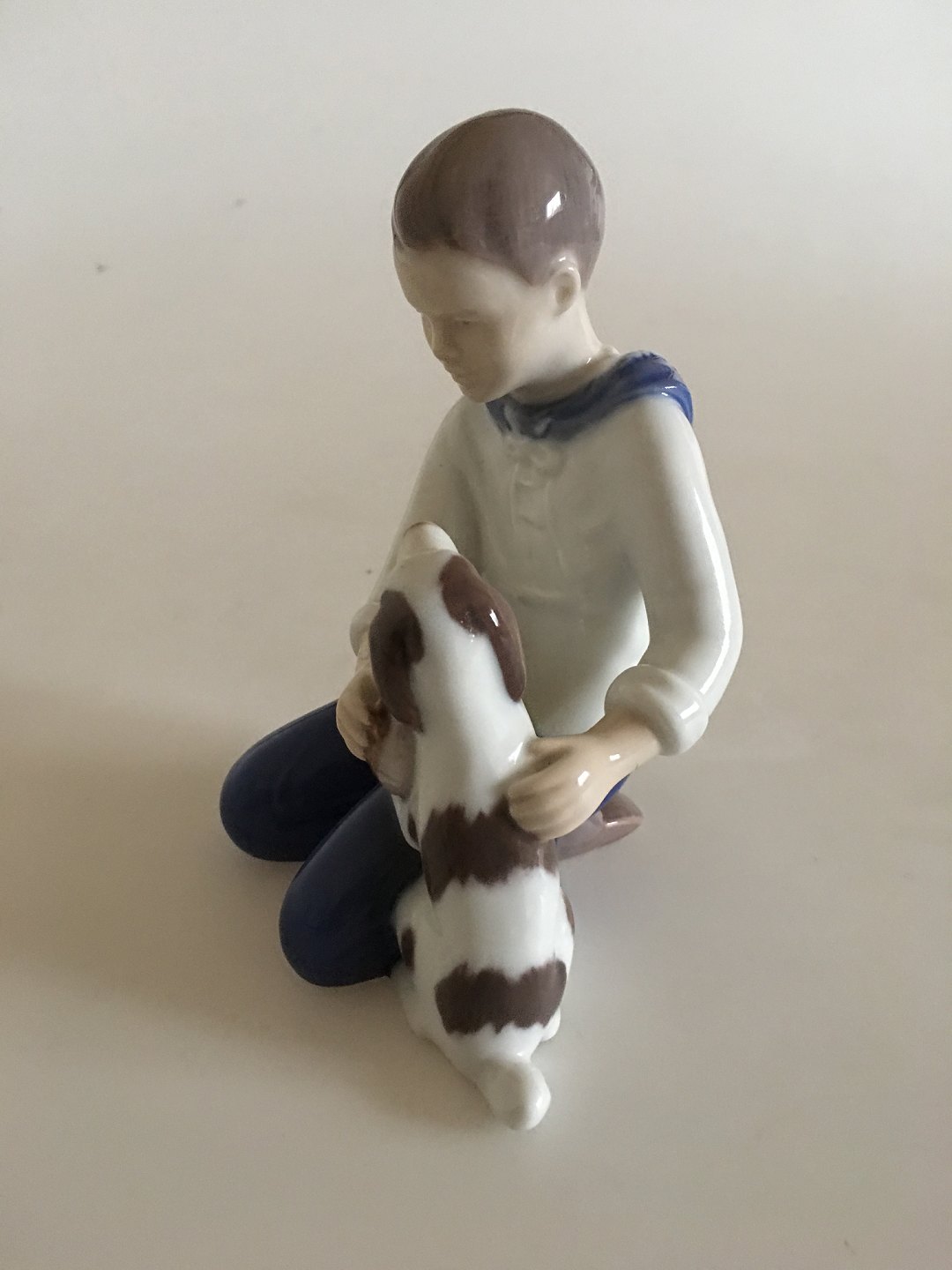 Bing & Grondahl Figurine of Boy Brushing His Dog No 2334. 1st Quality. 12 cm H (4 23/32").