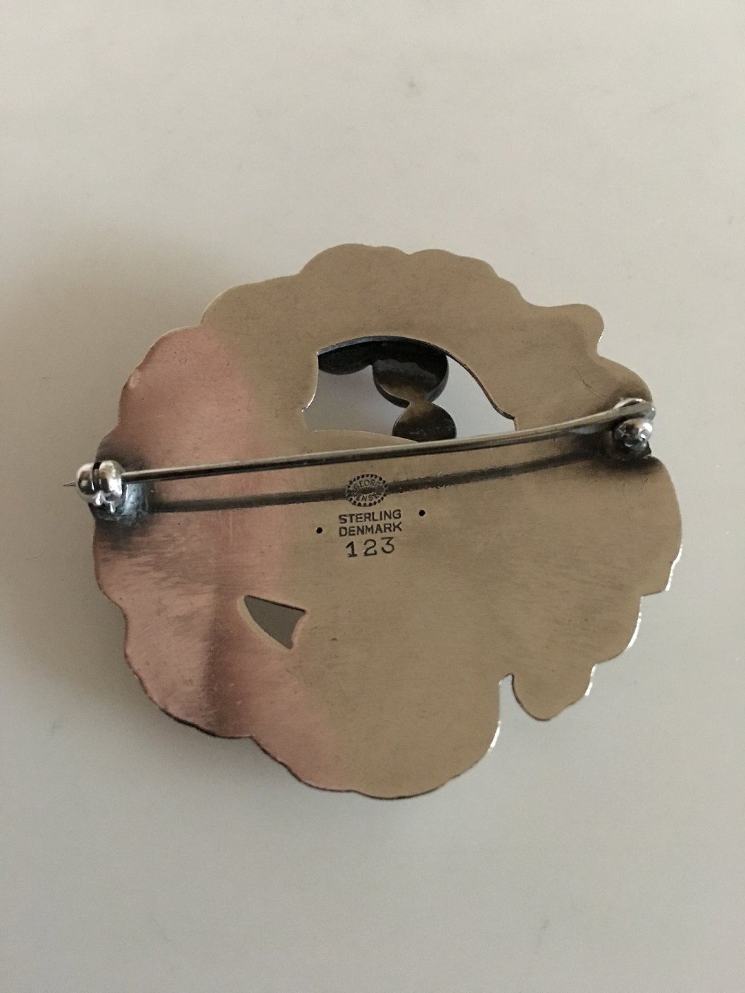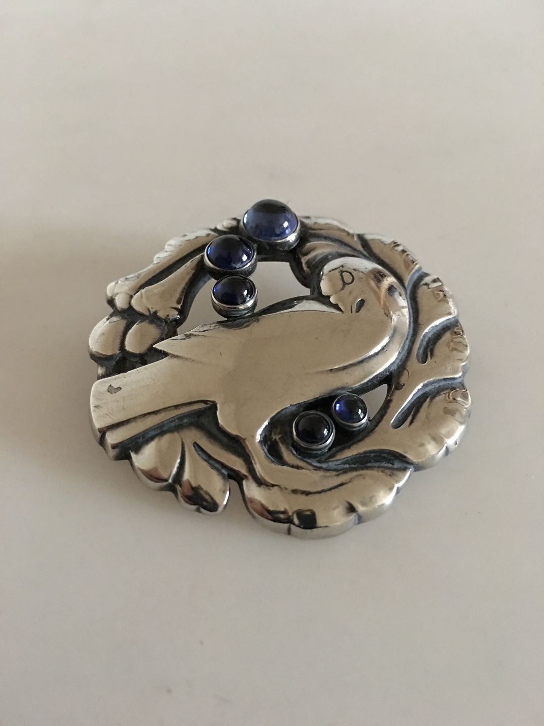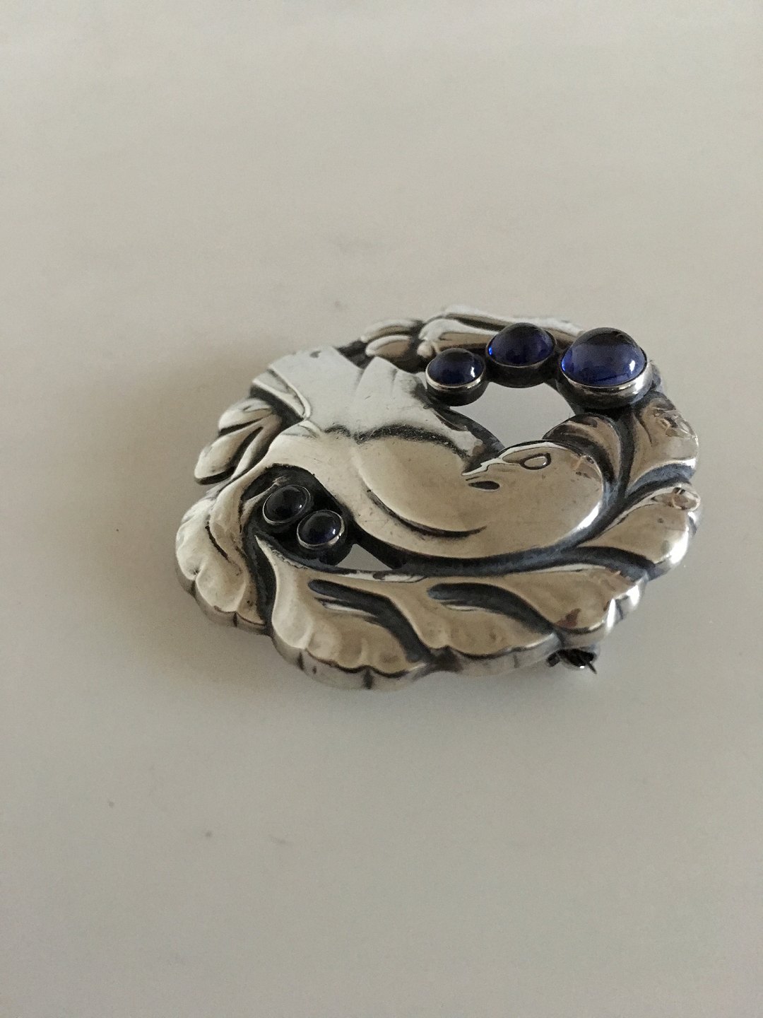 Georg Jensen Sterling Silver Brooch No 123 with Synthetic Saphire. Measures 4.5 cm / 1 49/64 in. dia. Weighs 17 g / 0.55 oz. From after 1945.