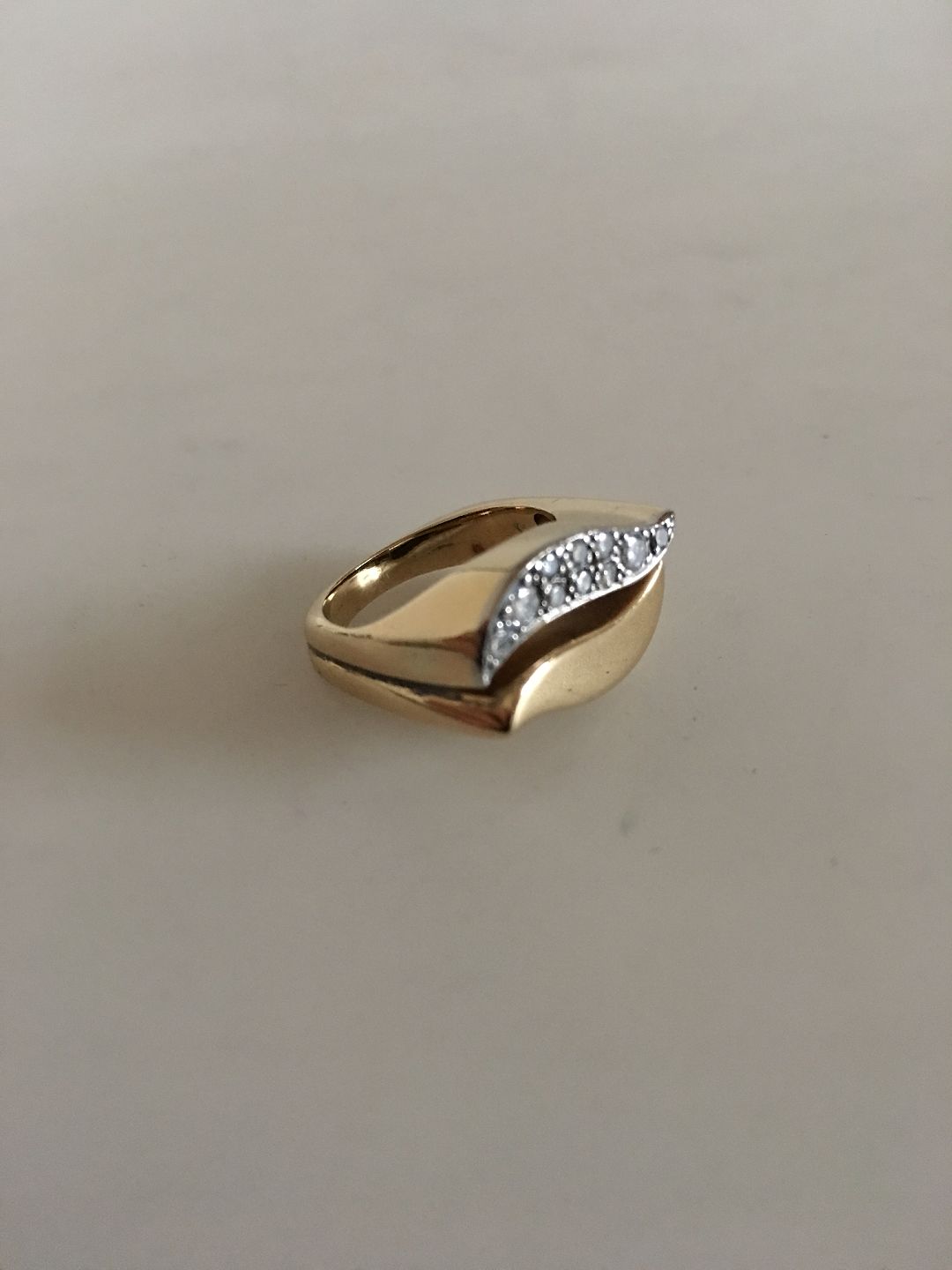 Georg Jensen 18K Partly Rhodinated Gold Ring with ten Brilliant Diamonds. Ring Size 49 / US 5. Weighs 9 g / 0.30 oz. Marked Georg Jensen & Wendel and is from 1945-1951.